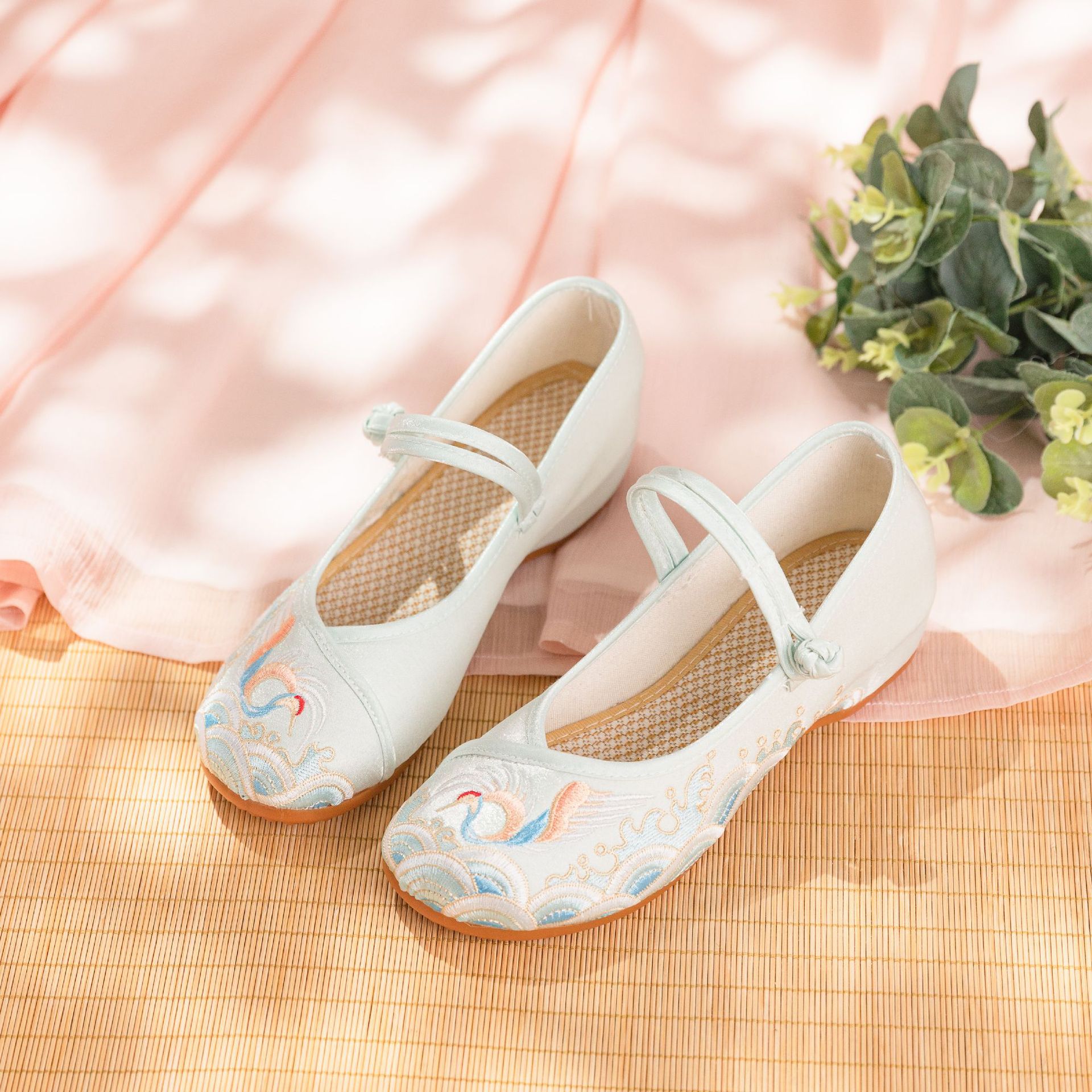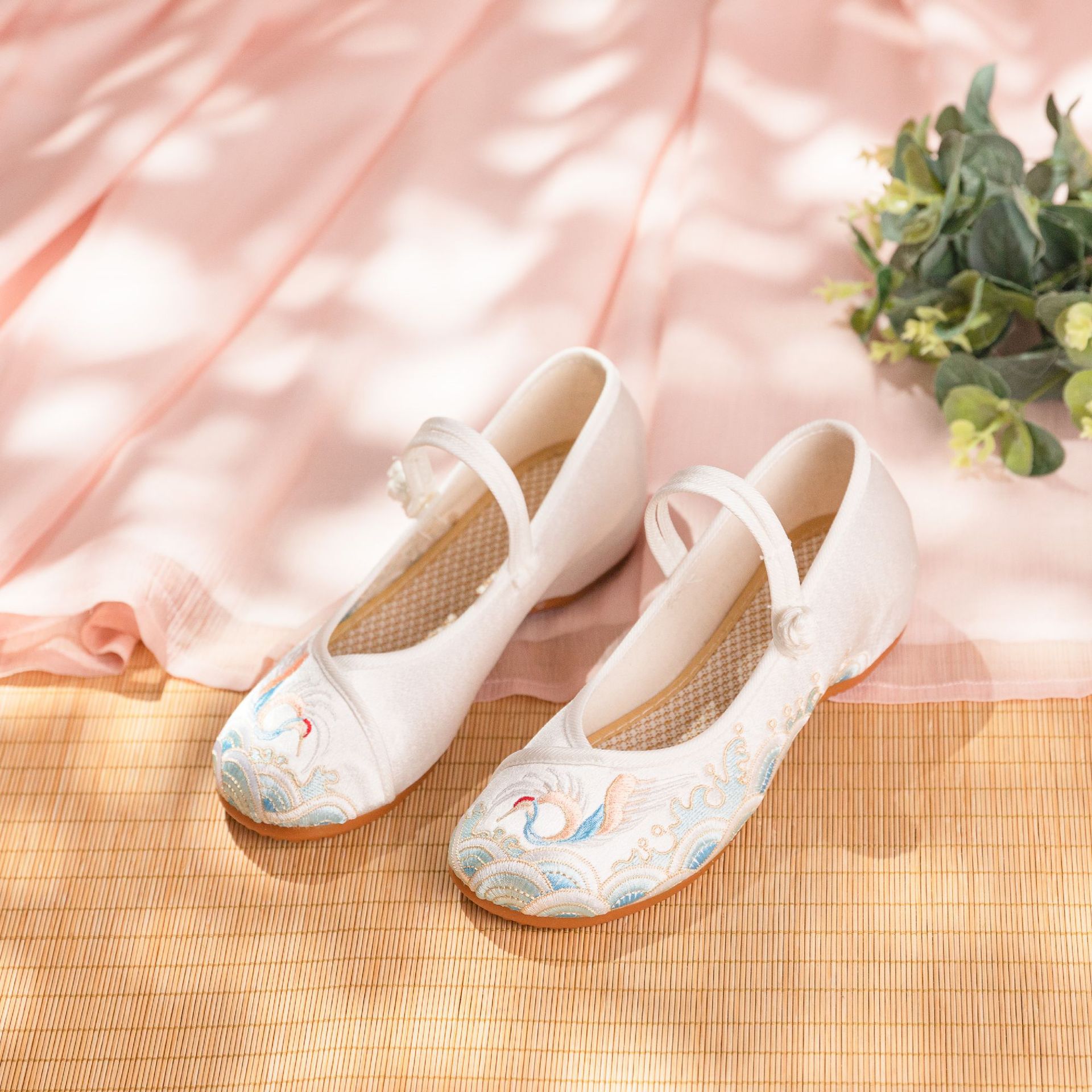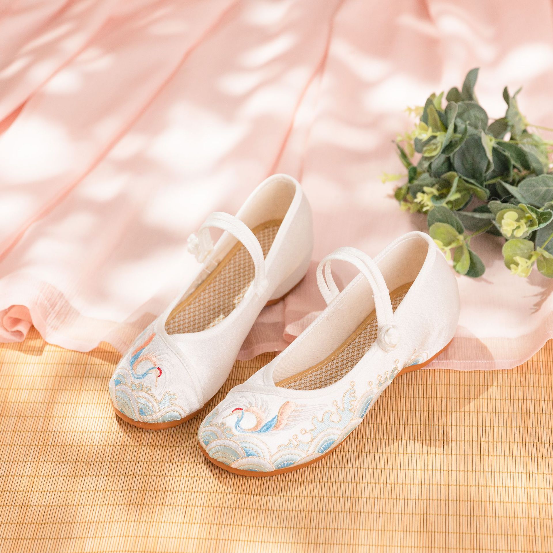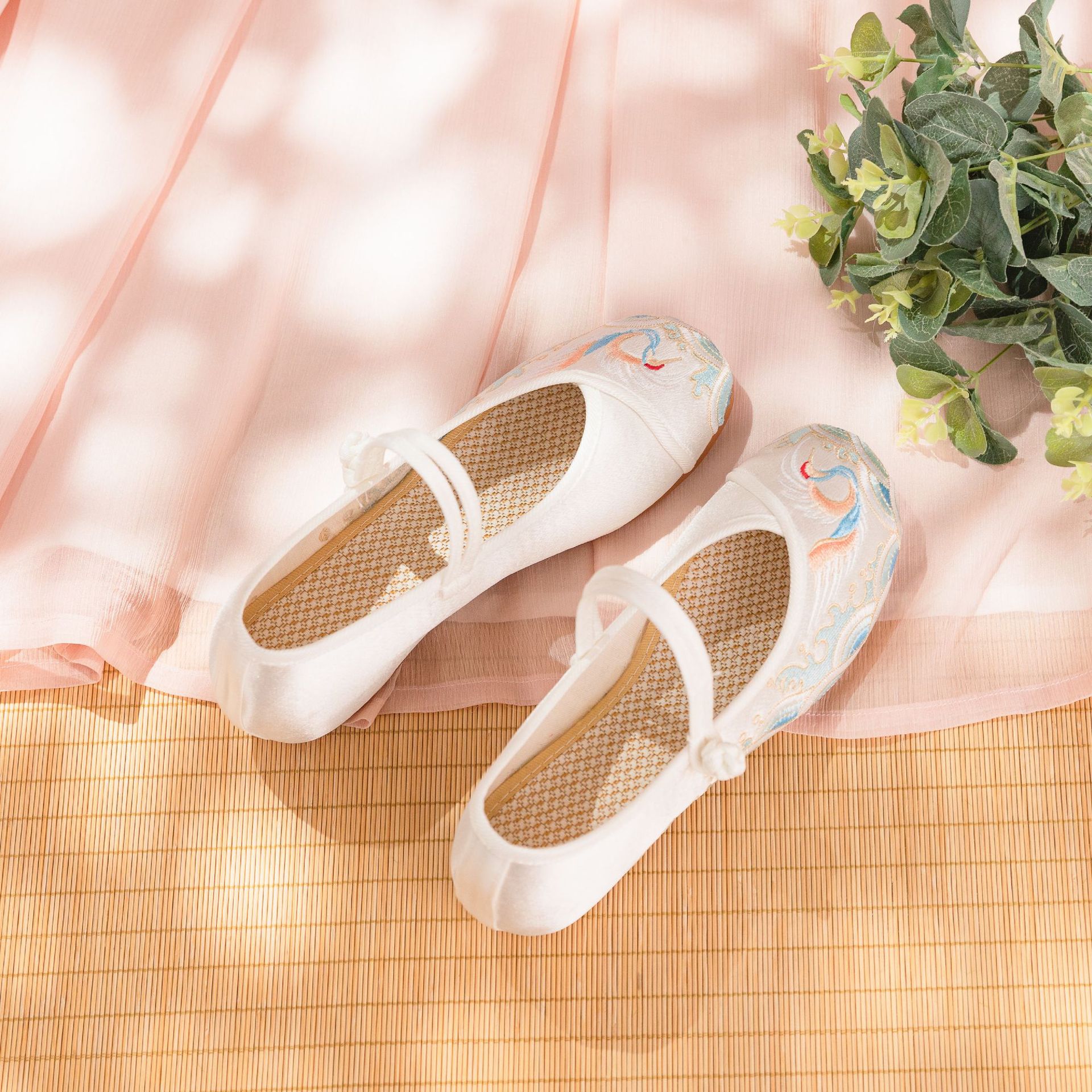 [Цинсян] 2024, летний новый продукт, элемент Хан, мерсеризованный атлас, ретро-костюм Cheongsam, туфли династии Хань, женские туфли на плоской подошве
