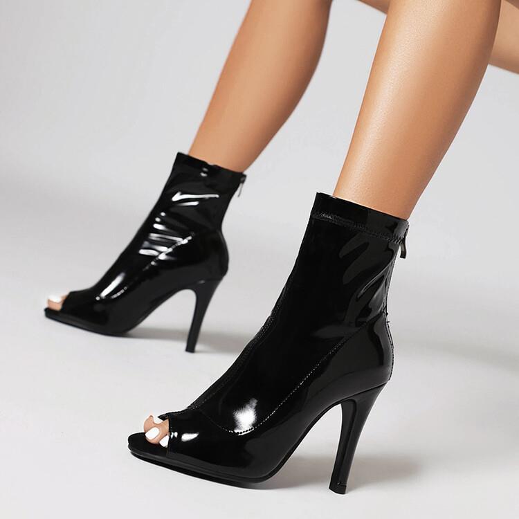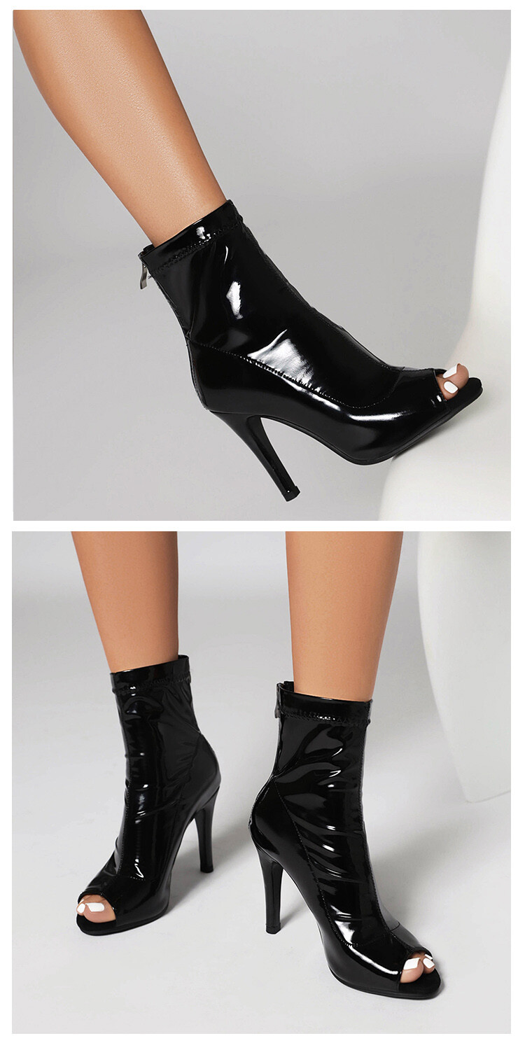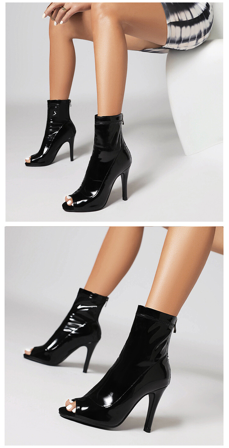 Классные сапоги с рыбьим ртом 2023 Новые летние ботильоны из лакированной кожи на тонком каблуке Джазовые танцы Танцы Женская обувь на высоком каблуке больших размеров