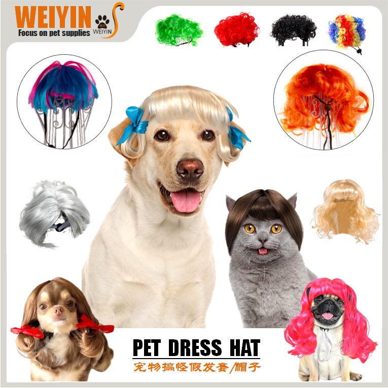 [Принт хвоста WEIYIN] Парик для домашних животных Головной убор для кошек Платье для собак Забавный головной убор Аксессуары для шляп для домашних животных