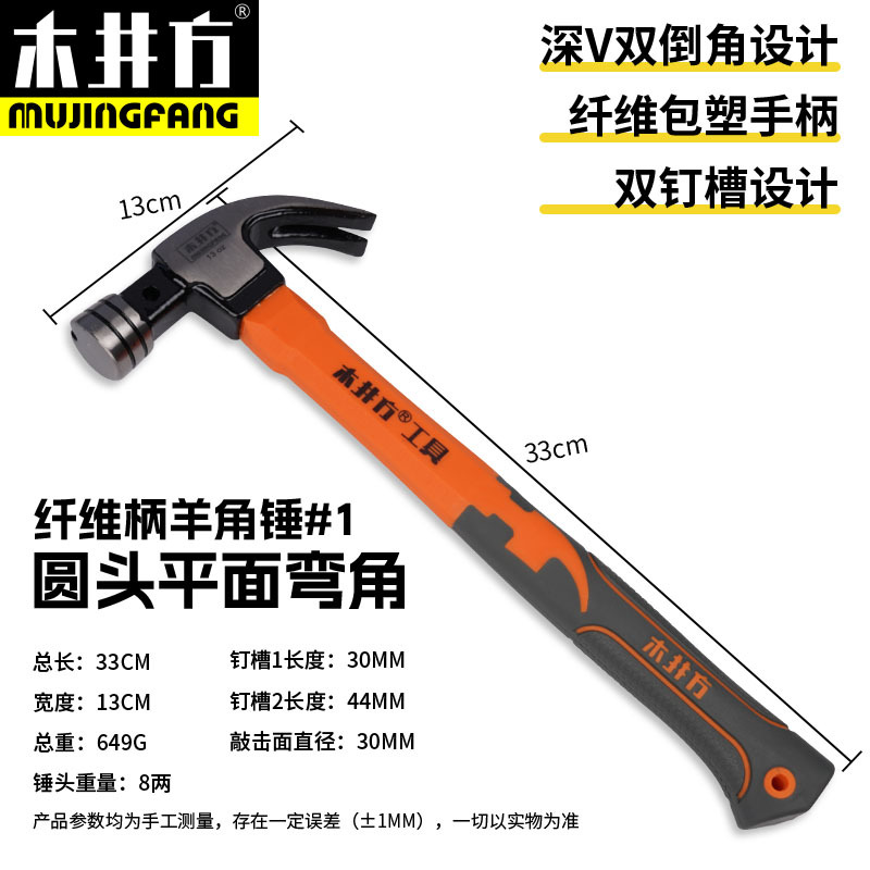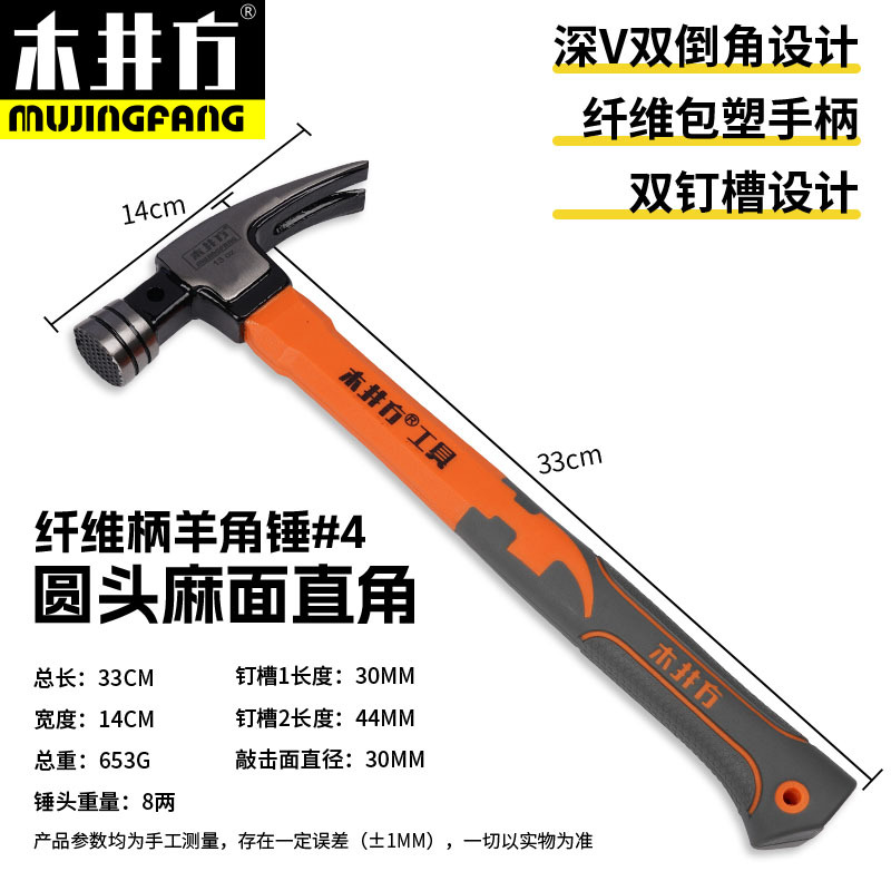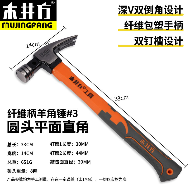 Mujing квадратные новые волокна ручка коготь молоток гвоздь молоток деревообрабатывающий молоток из высокоуглеродистой стали специальный стальной молоток с круглой головкой под прямым углом поверхность замка
