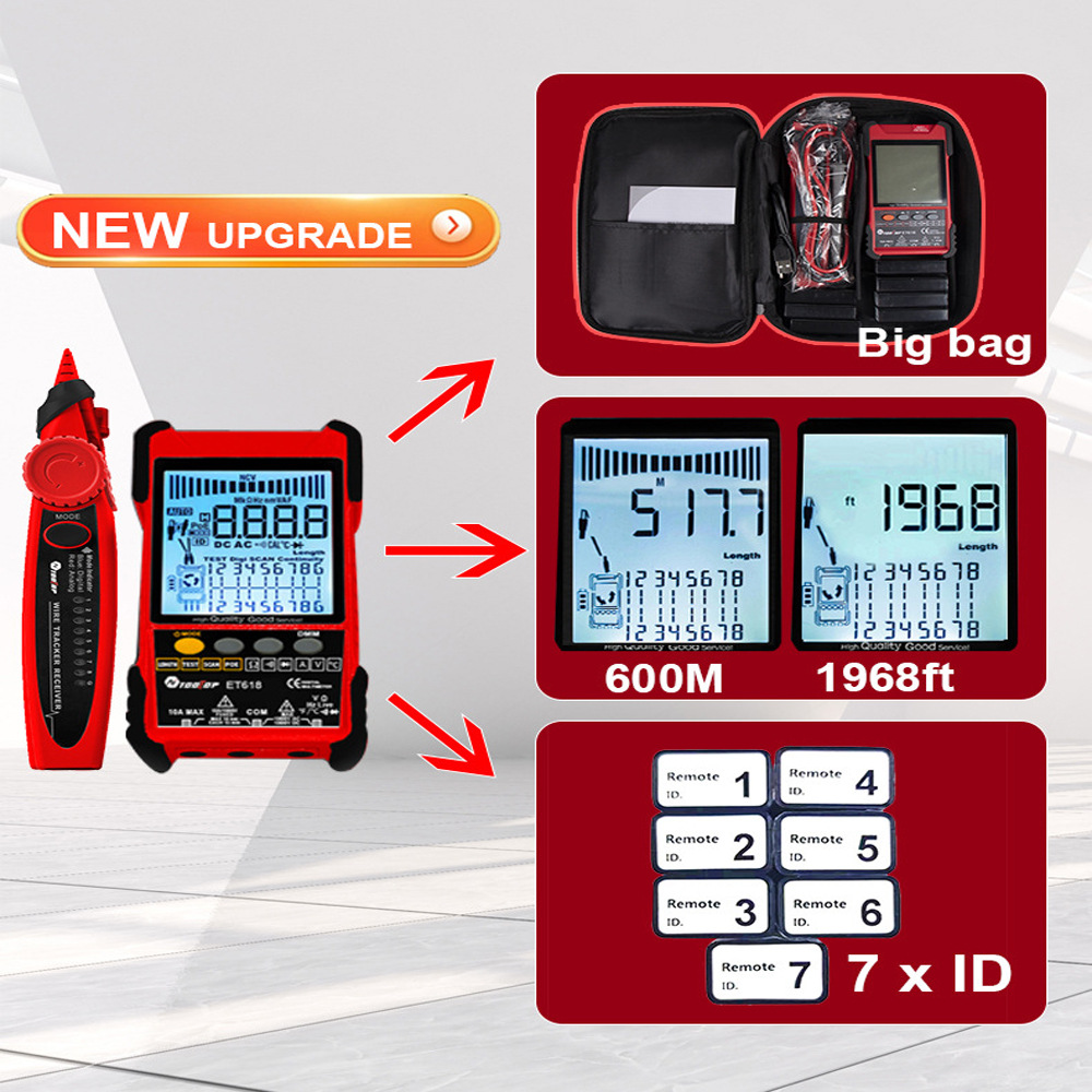ET616ET618 сетевой искатель мультиметр сетевой искатель два в одном сетевой искатель 600 метров измерение длины сетевого кабеля