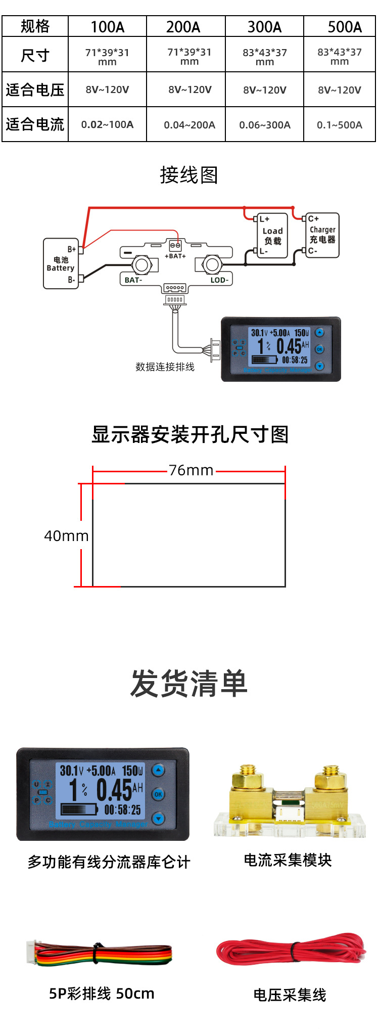 120V100A (ограниченная по времени специальная покупка 2 комплекта); 120 В 200А; 120 В300А; 120 В 500 А; Добавить функцию апплета Bluetooth мобильного телефона; Добавить функцию измерения температуры; Добавить функцию связи RS485; Соединительная линия повышена до экранированной линии 3 м.