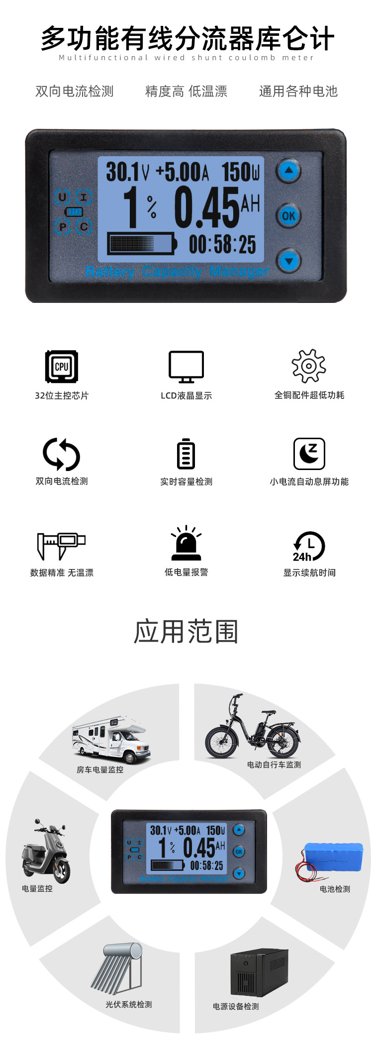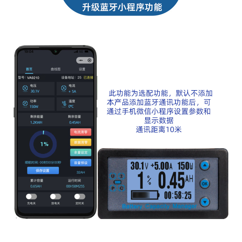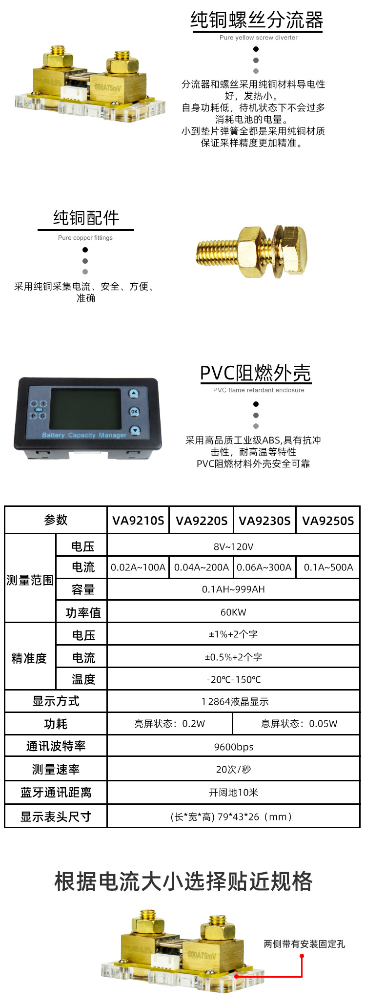 VA9210 низкое энергопотребление Высокоточный ЖК-дисплей Bluetooth измеритель напряжения тока емкости электромобиль караван аккумулятор кулон измеритель