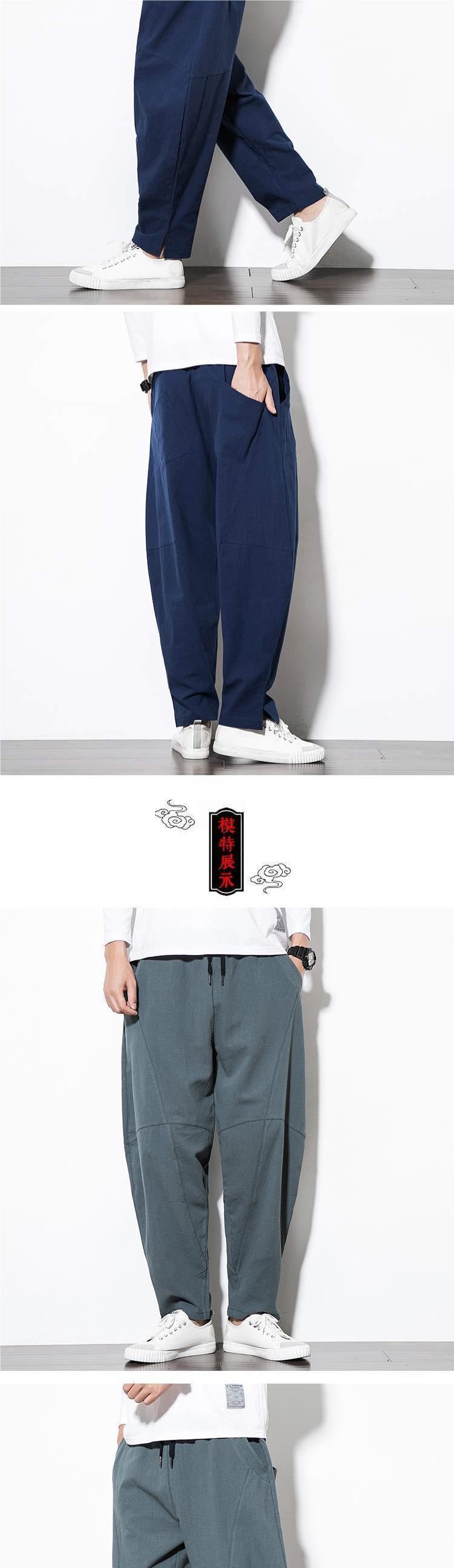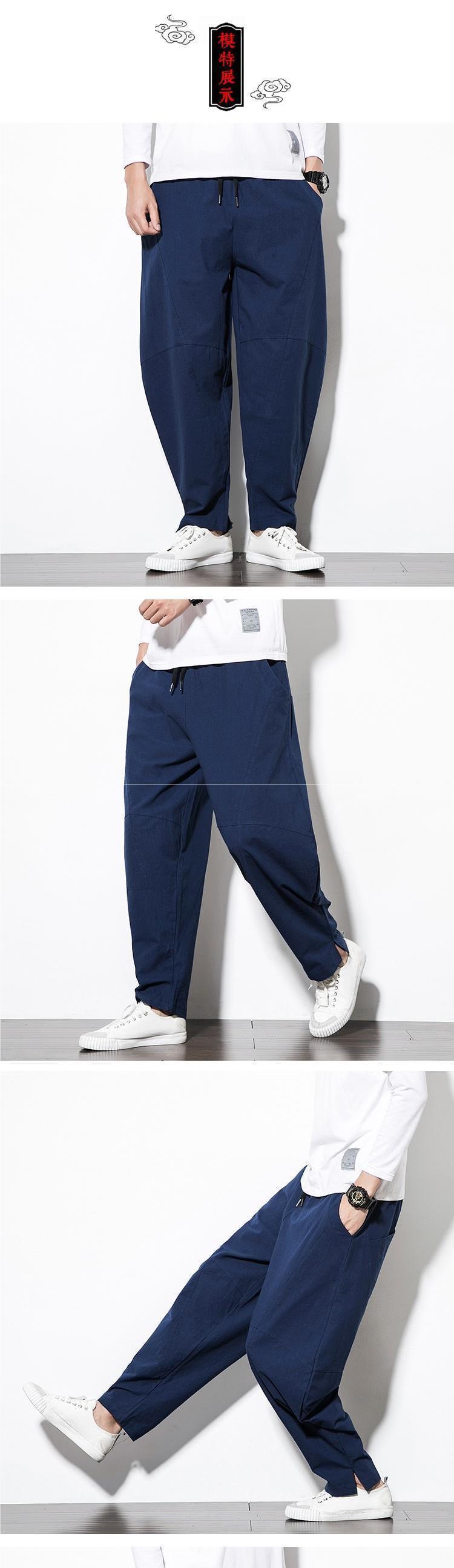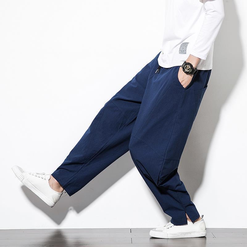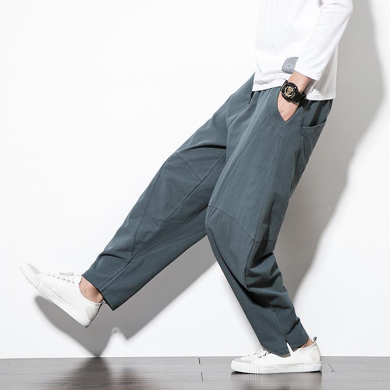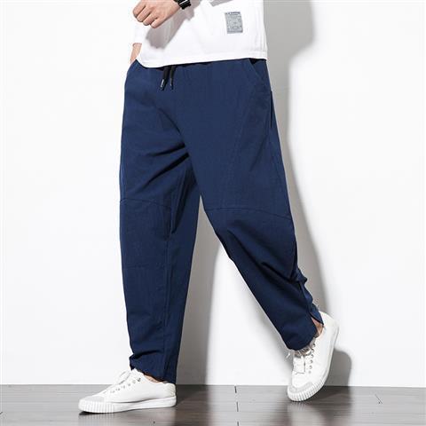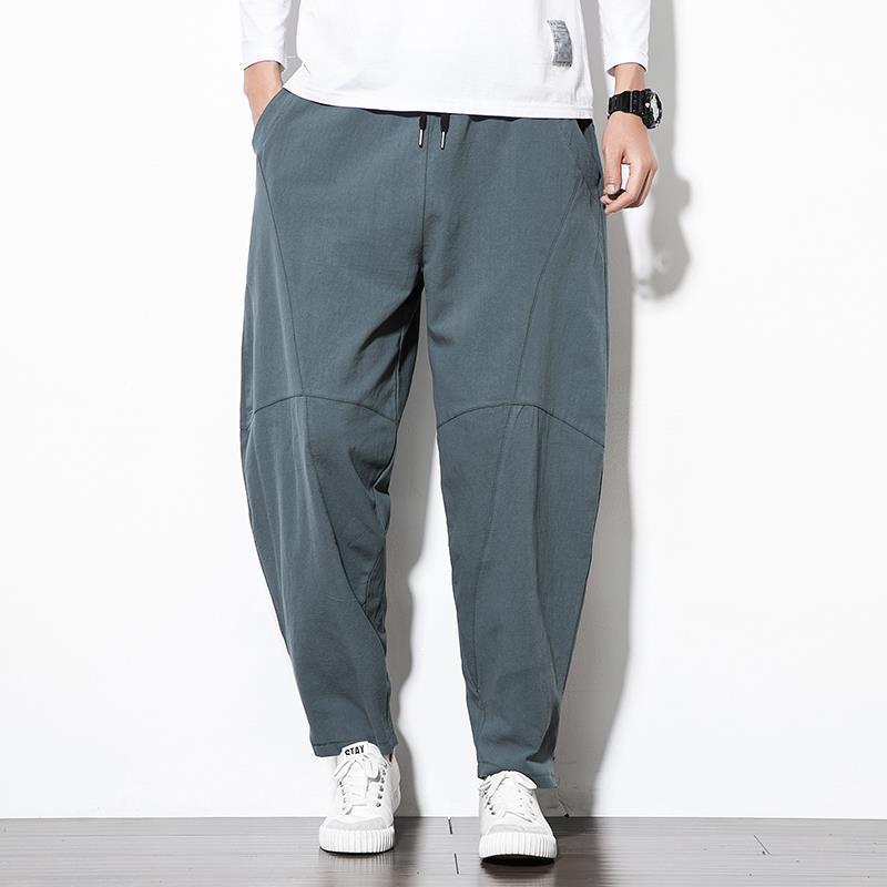 Весенние и летние льняные брюки мужские брюки большого размера свободные повседневные брюки с низкой промежностью