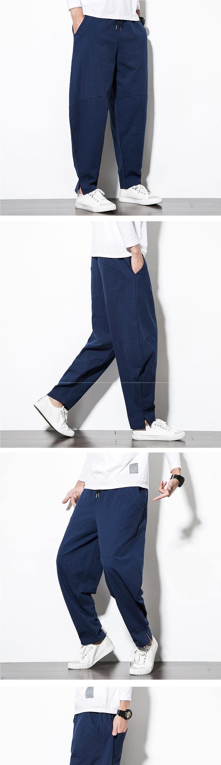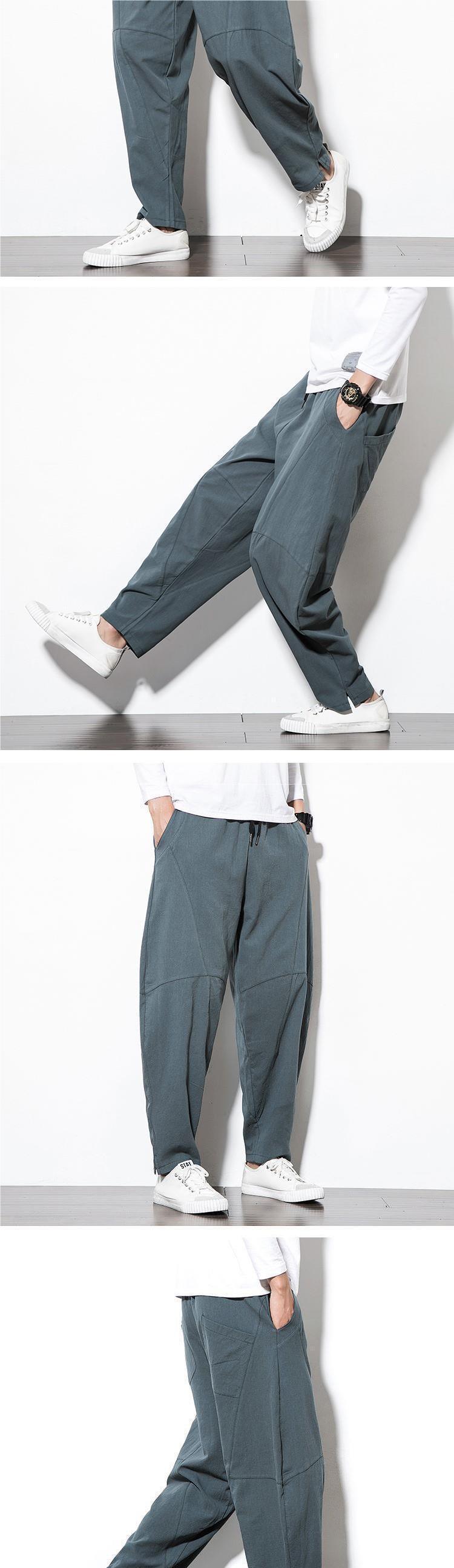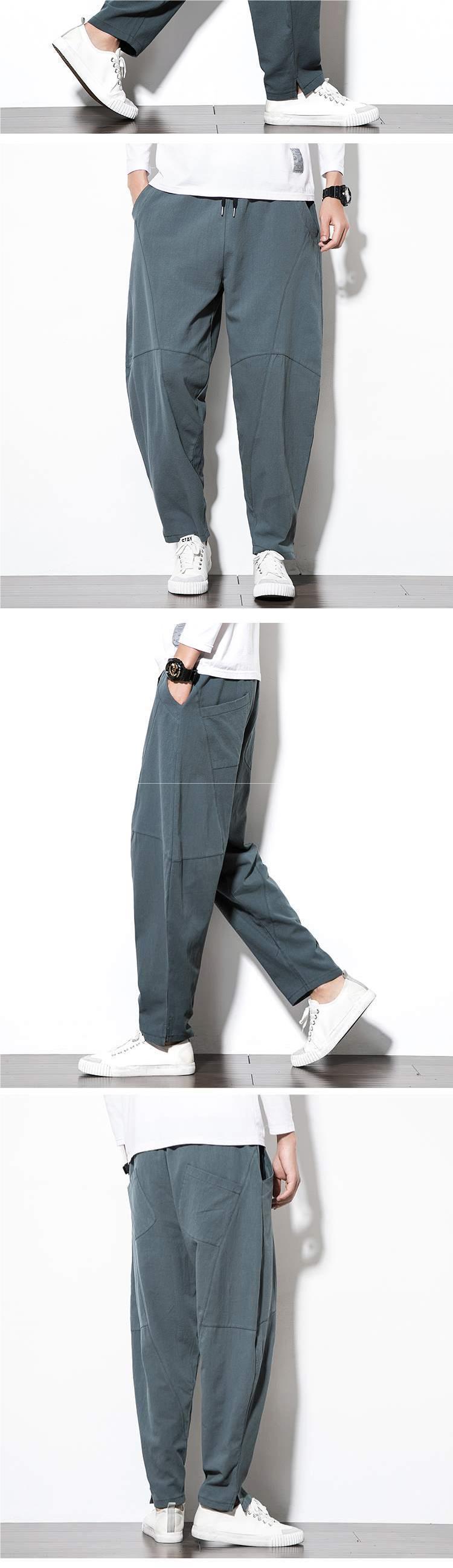 Весенние и летние льняные брюки мужские брюки большого размера свободные повседневные брюки с низкой промежностью