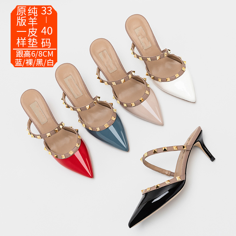 Y20A6-2 Сандалии с носком женские туфли на высоком каблуке лето 2023 сандалии с французским острым носком на шпильке с заклепками