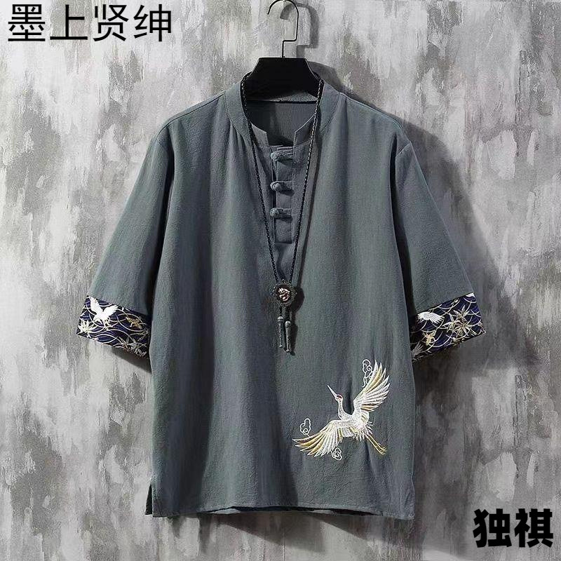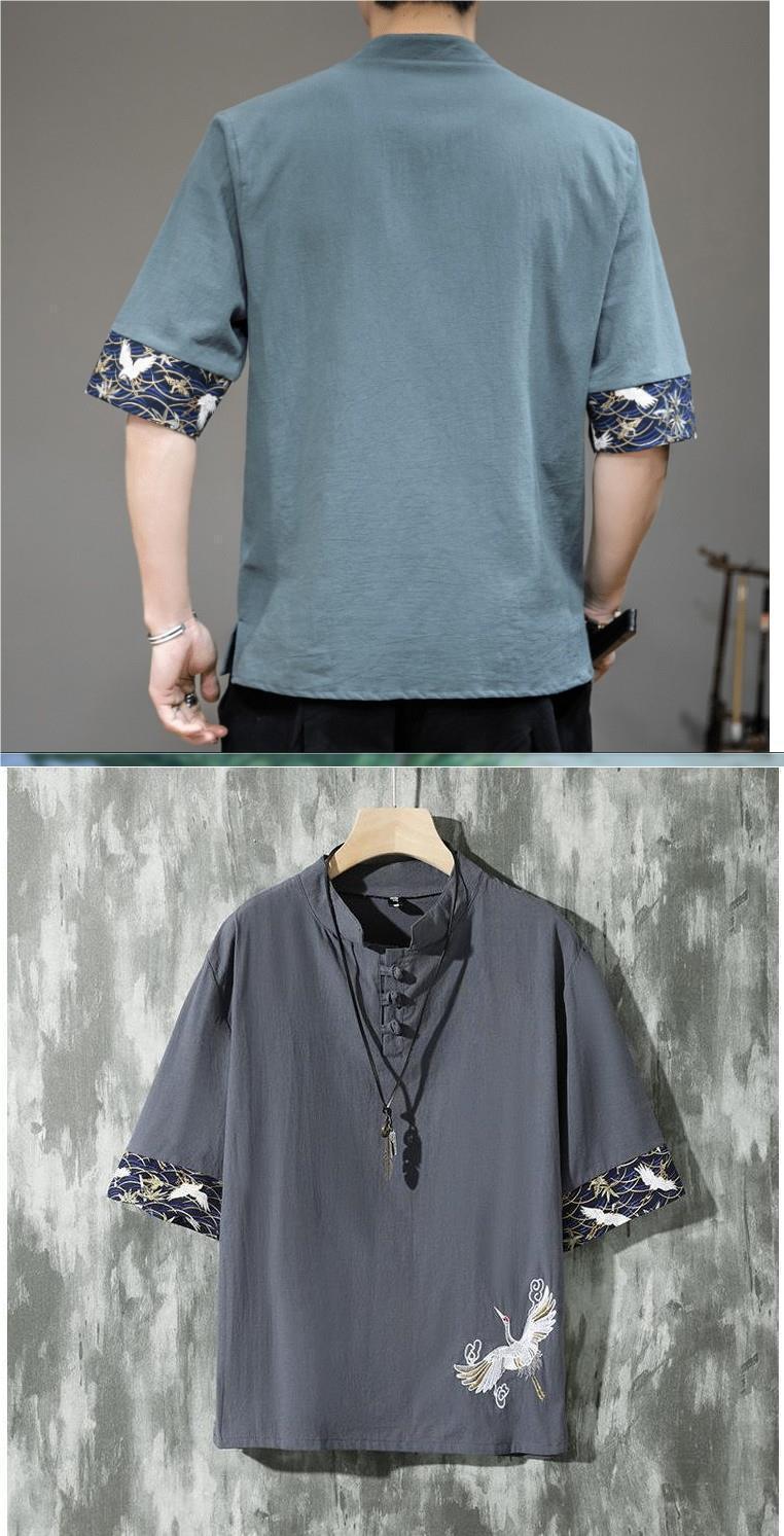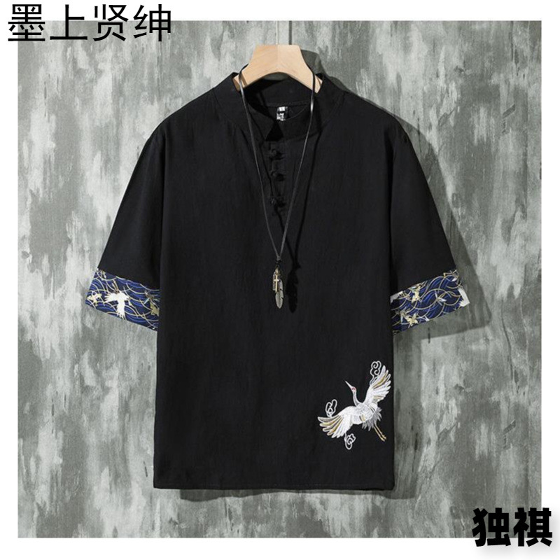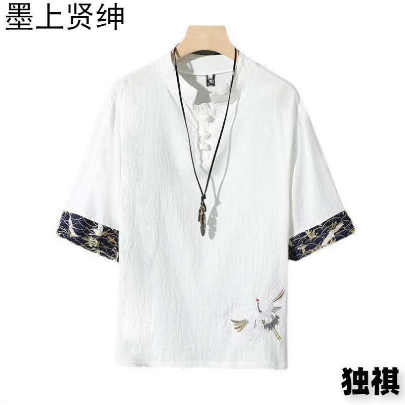 Летняя тонкая льняная футболка с короткими рукавами мужской китайский стиль