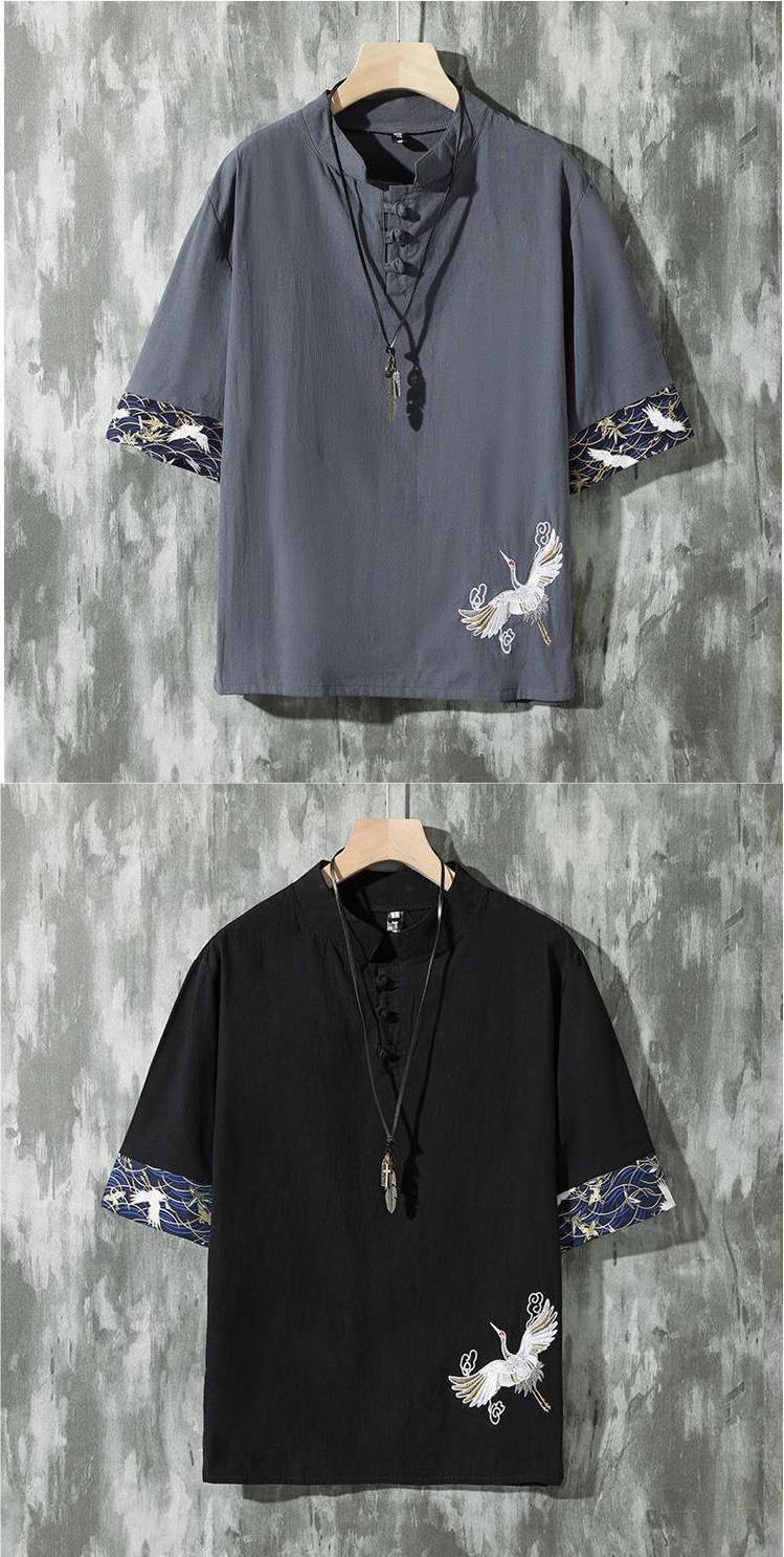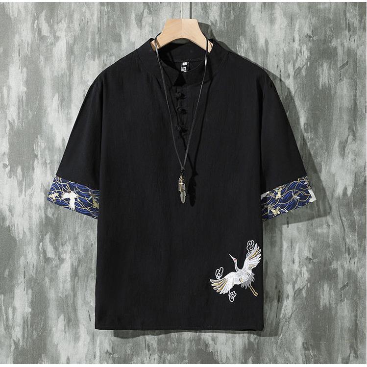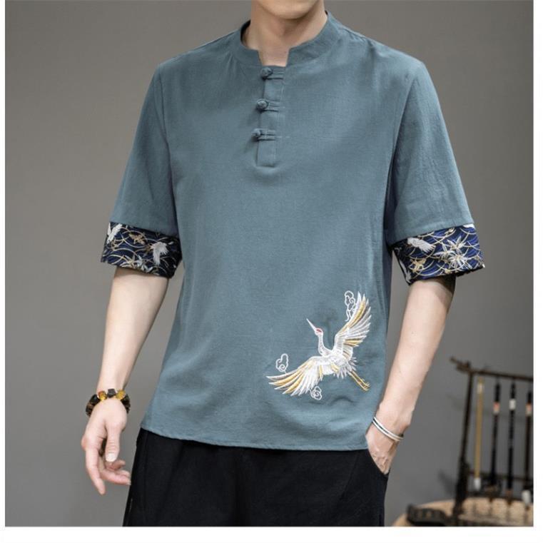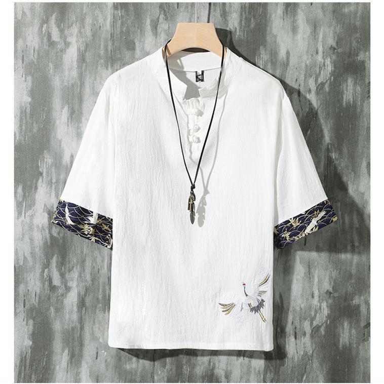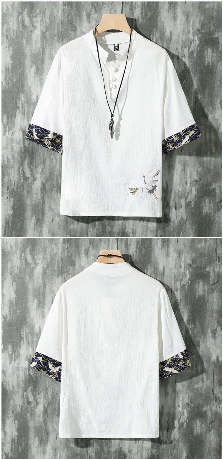 Летняя тонкая льняная футболка с короткими рукавами мужской китайский стиль