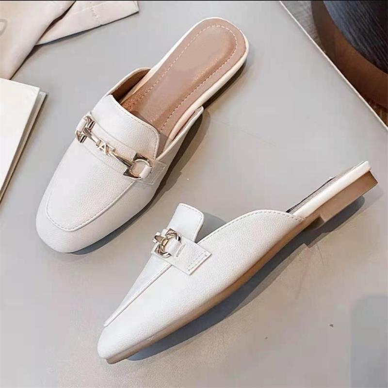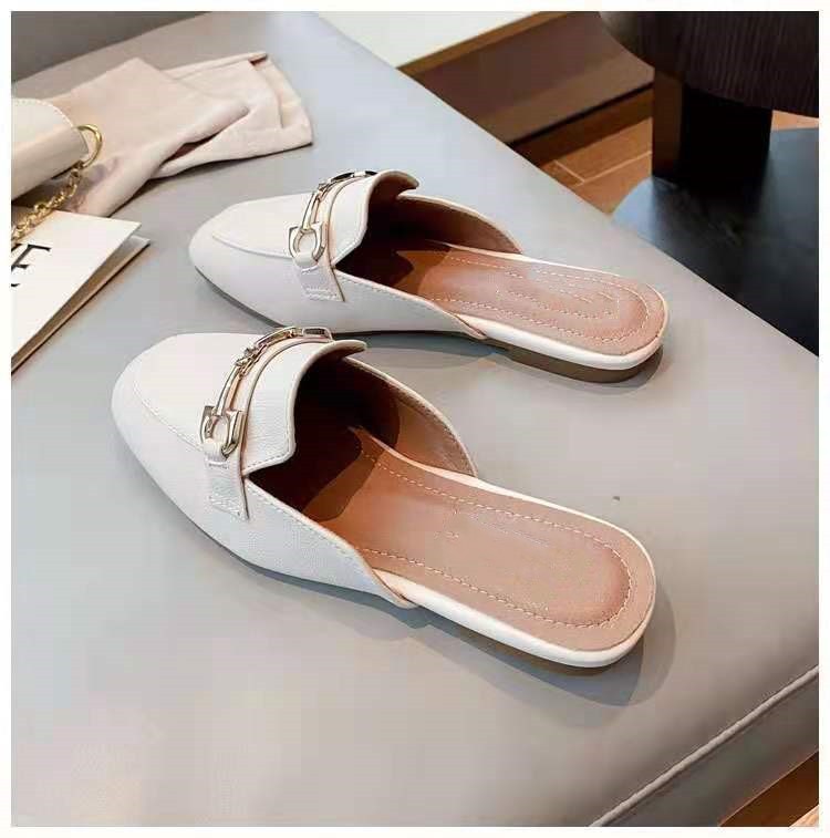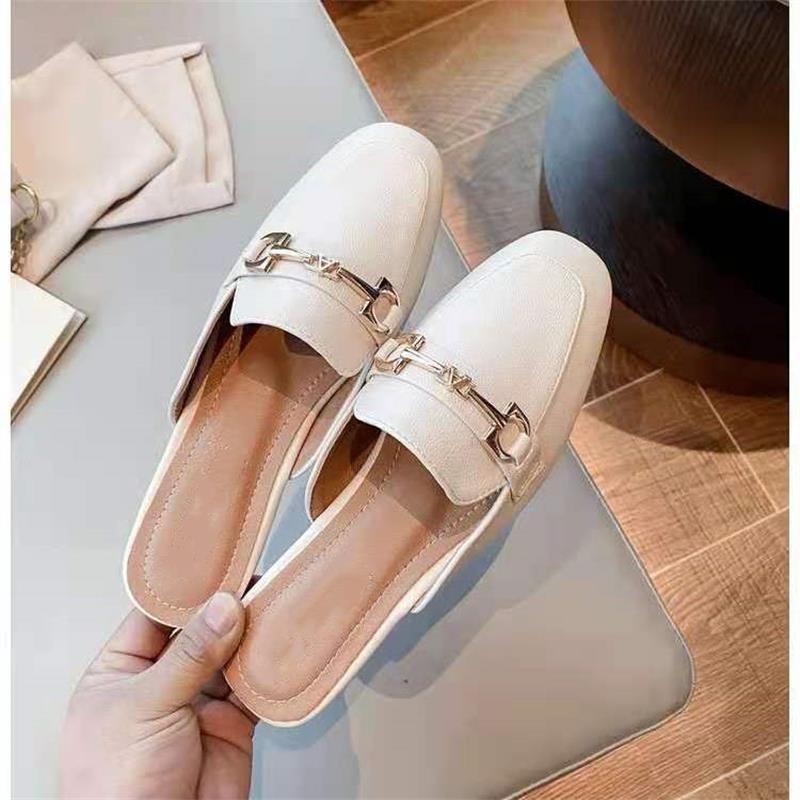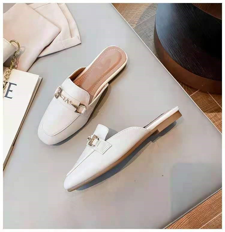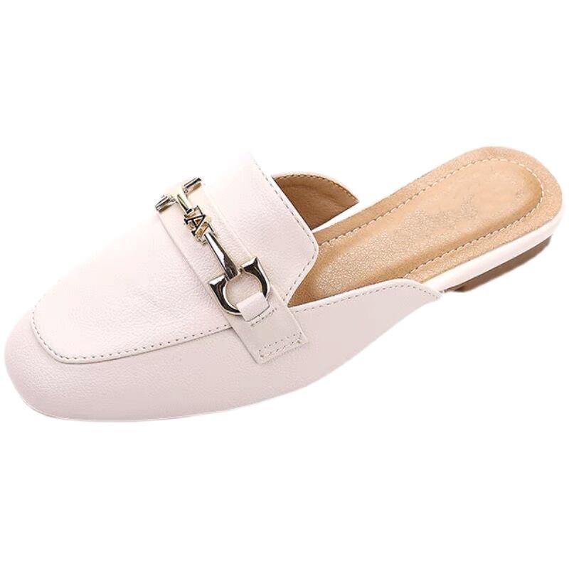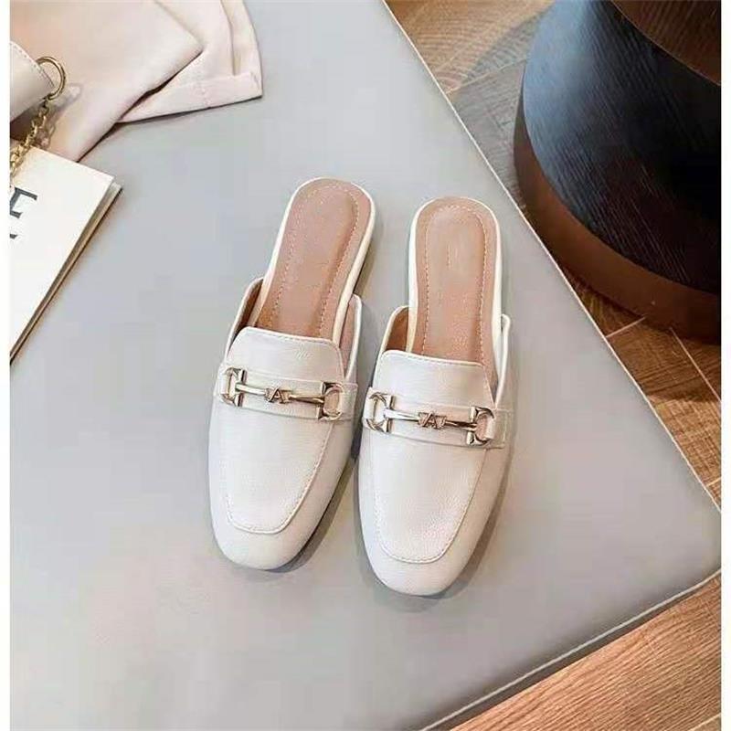 Мягкая кожа с низким каблуком ленивый багаотоу половинная тапочка женская летняя новая английская женская обувь плоская подошва
