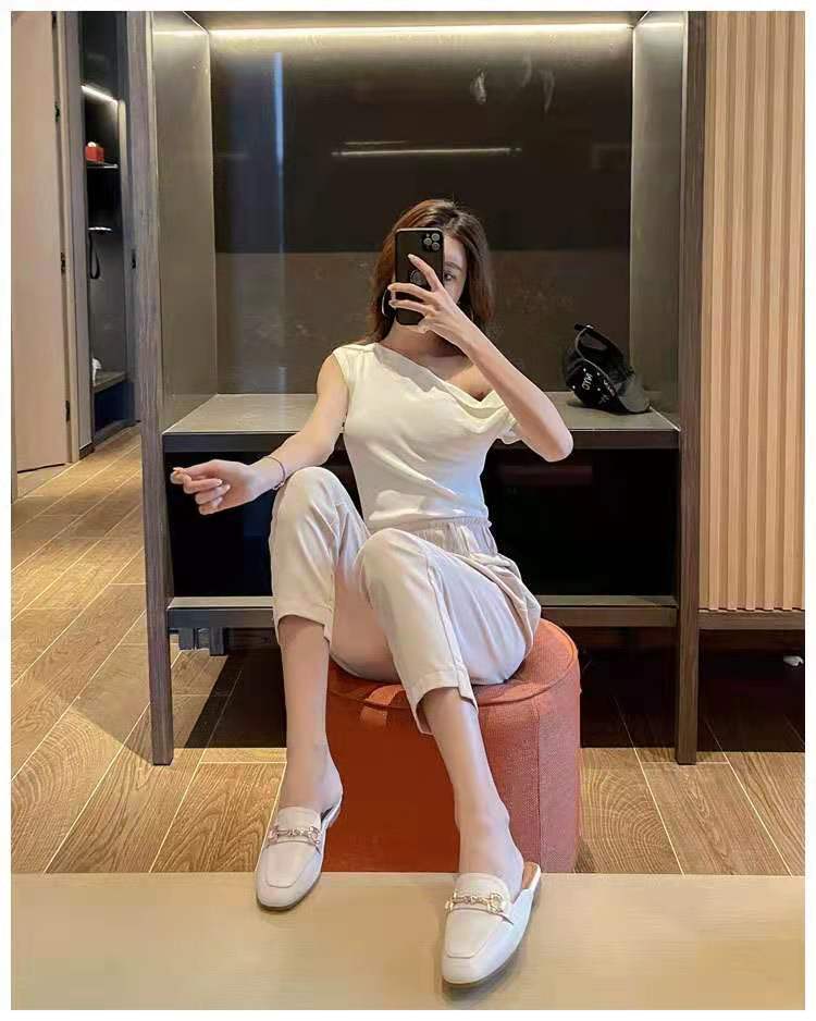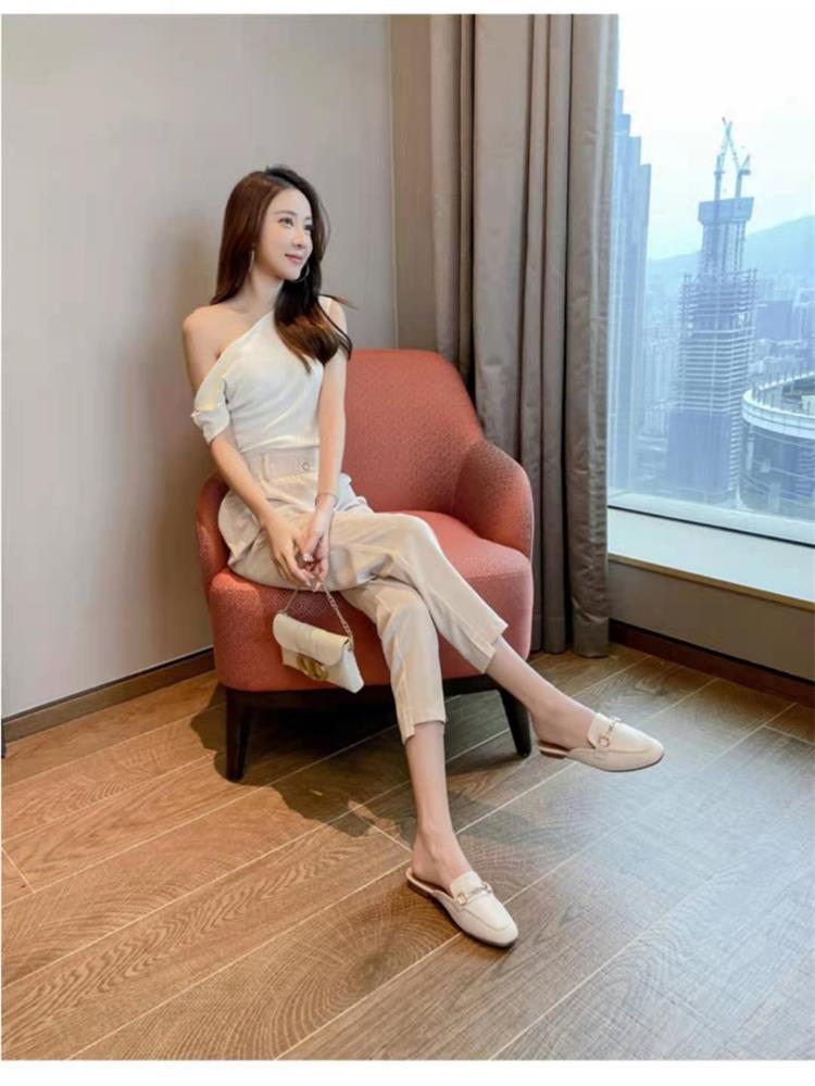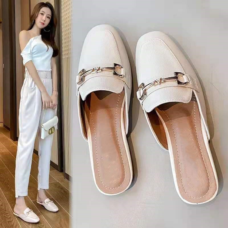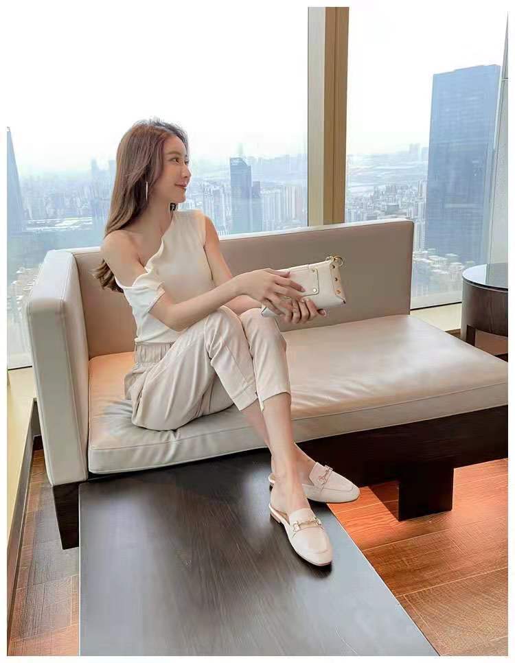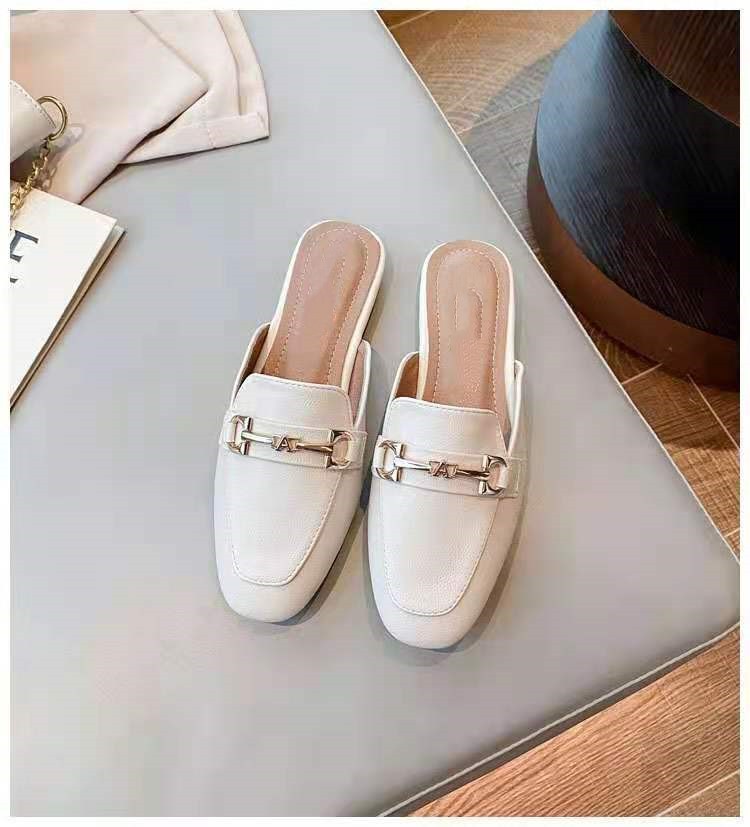 Мягкая кожа с низким каблуком ленивый багаотоу половинная тапочка женская летняя новая английская женская обувь плоская подошва