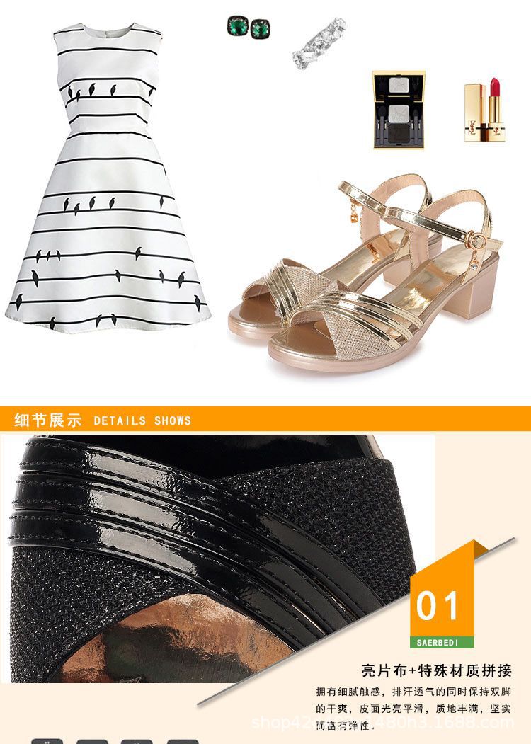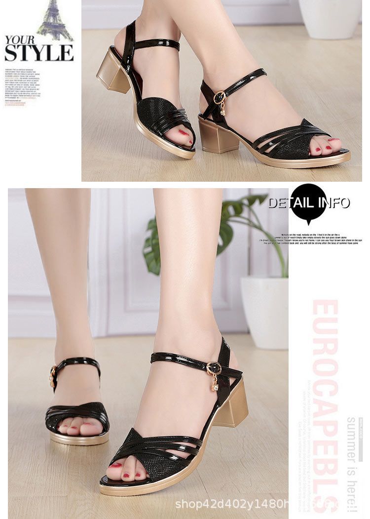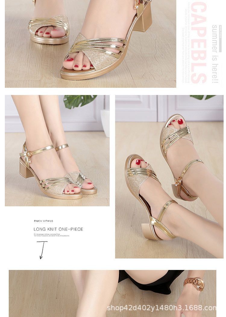 Женские сандалии больших размеров среднего возраста 35-42, новинка 2023 года, летние универсальные сандалии для мам на среднем каблуке, очень большие женские сандалии на толстом каблуке