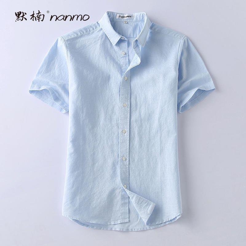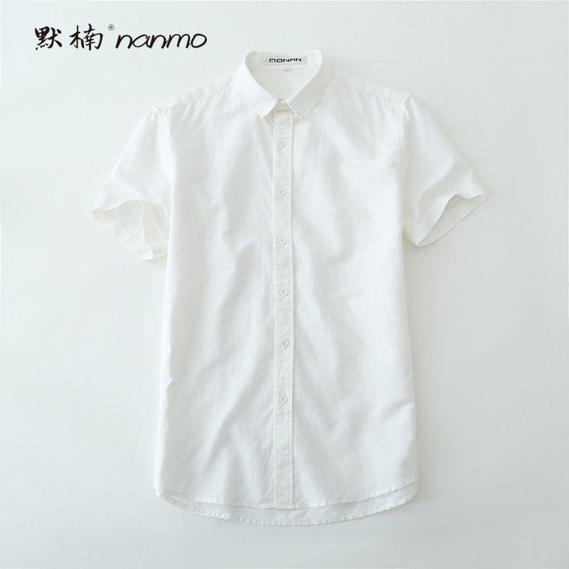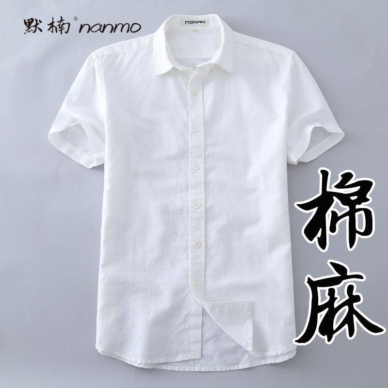 Летняя мужская белая хлопчатобумажная рубашка с короткими рукавами