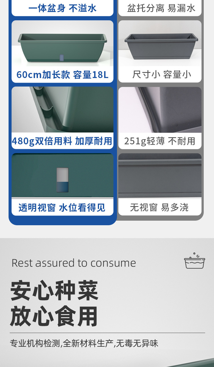 Прямоугольный овощной горшок семейный балкон цветочный артефакт длинный пластиковый горшок ленивый самопоглощающий цветочный горшок завод оптом