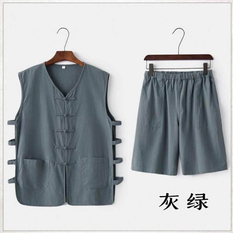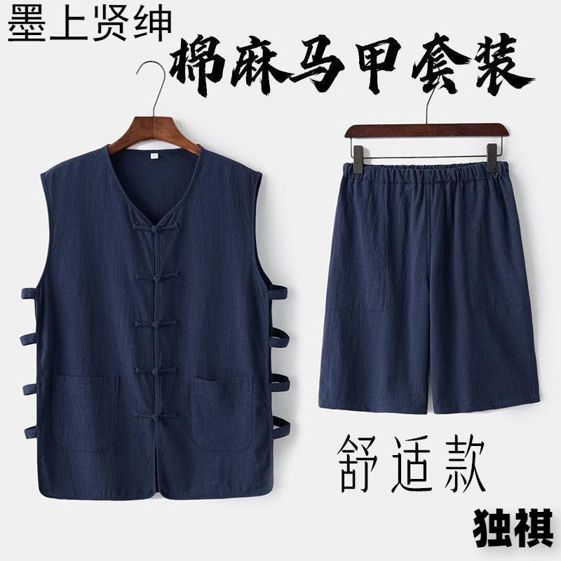 Tang одеваются мужчины среднего и пожилого возраста набор жилетов Летняя мужская одежда папа пожилой летний жилет дедушка костюм одежды