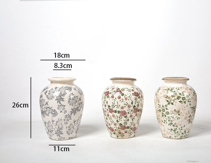 默认无孔,欧式复古做旧效果,尺寸 : 肚径18.2cm 高26 内口 8.3cm , 装量 : 8个一箱
