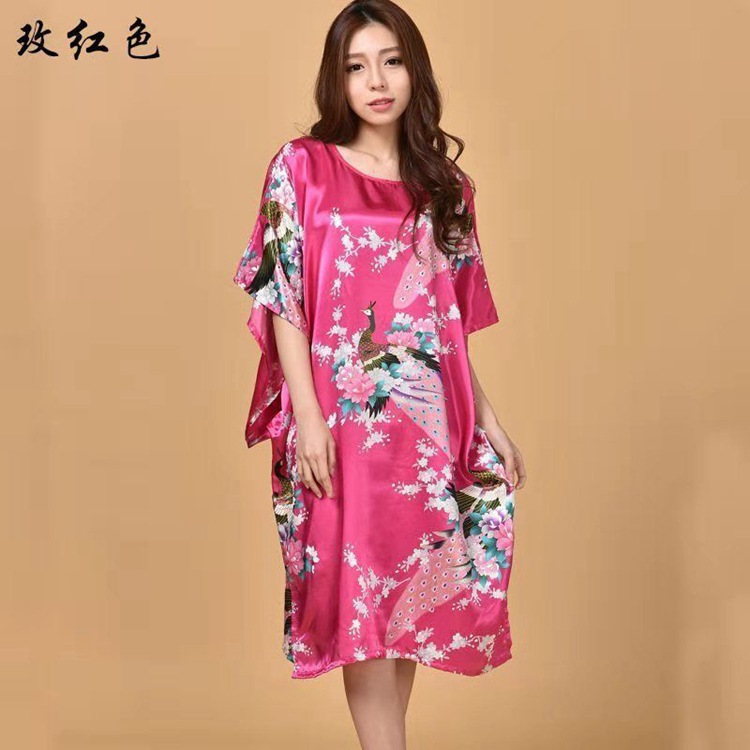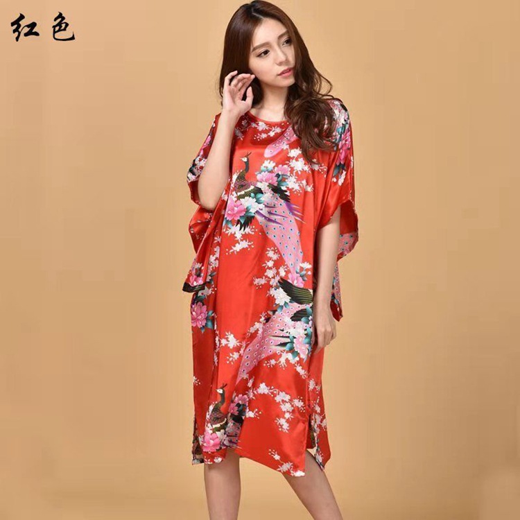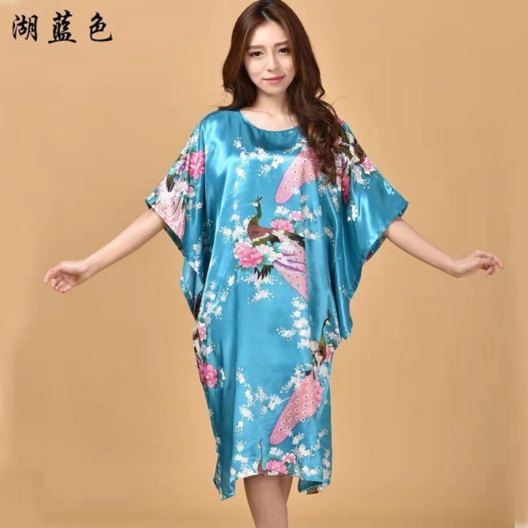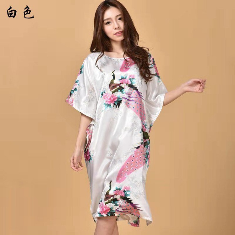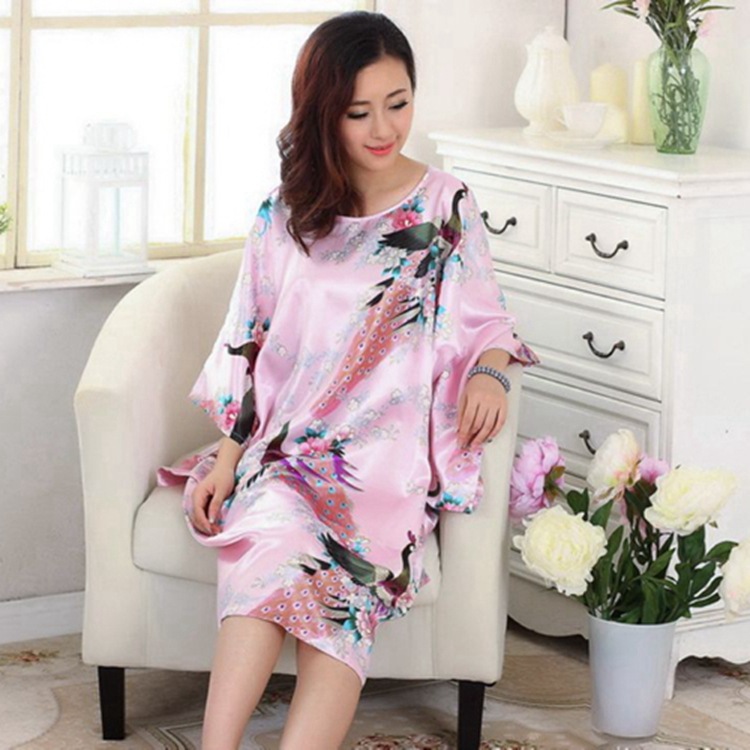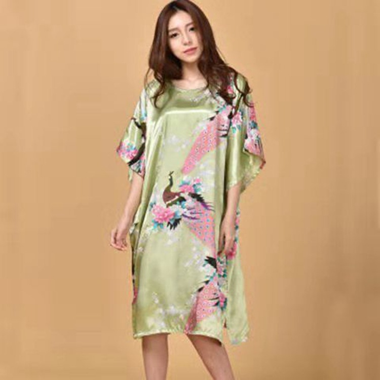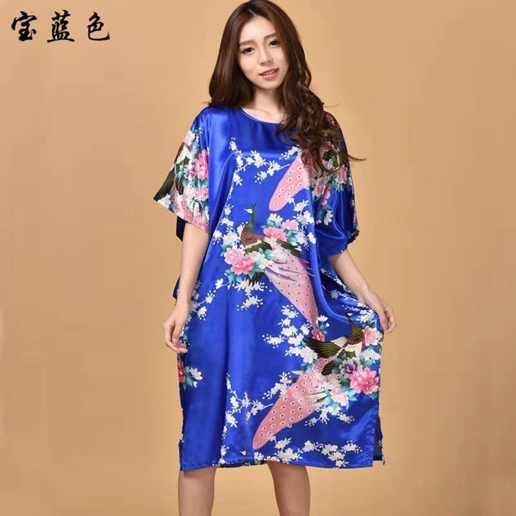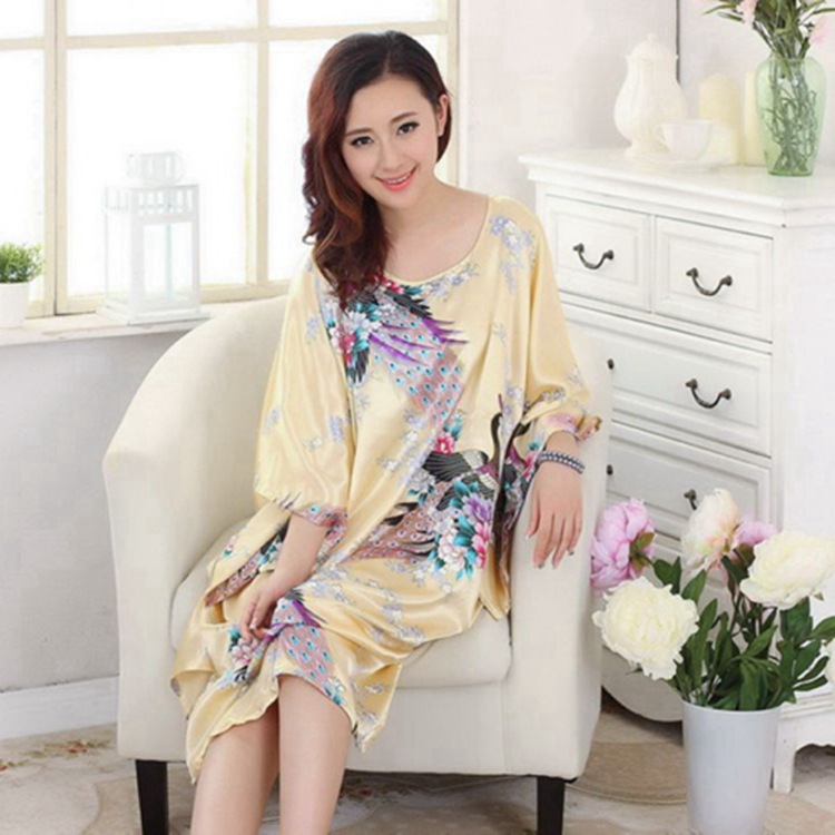 Летняя тонкая ночная рубашка с павлином из искусственного шелка, Женская свободная ночная рубашка больших размеров, халат, домашняя одежда, повседневная простая