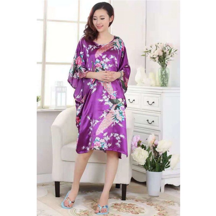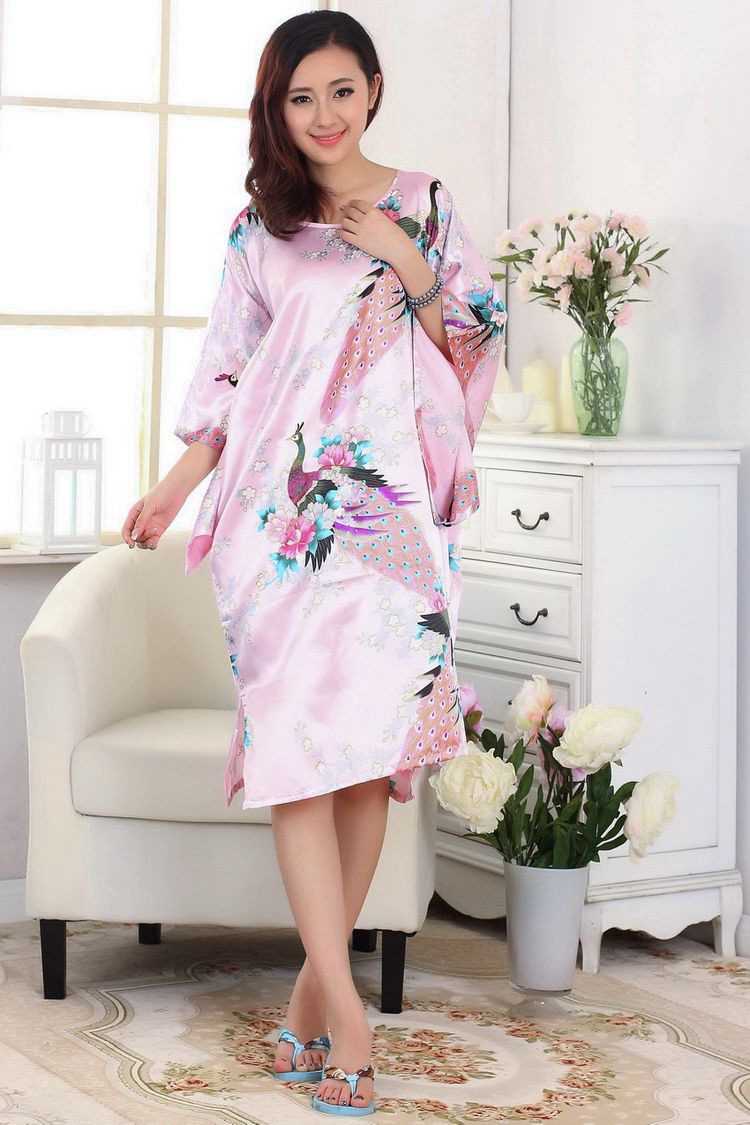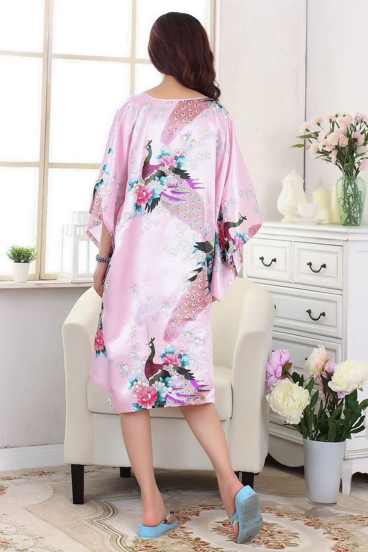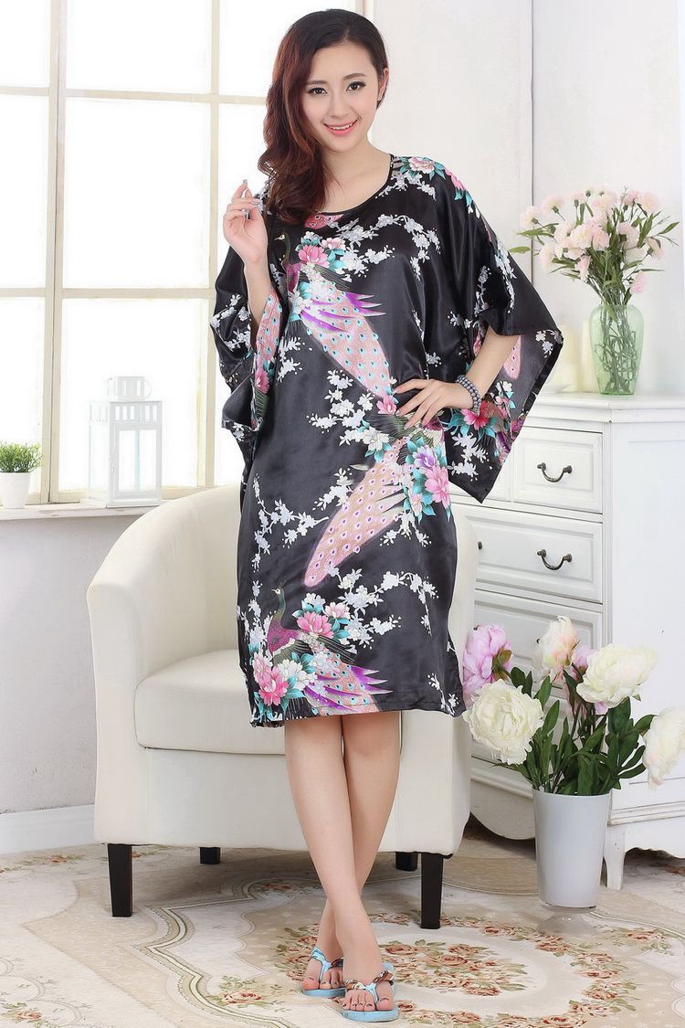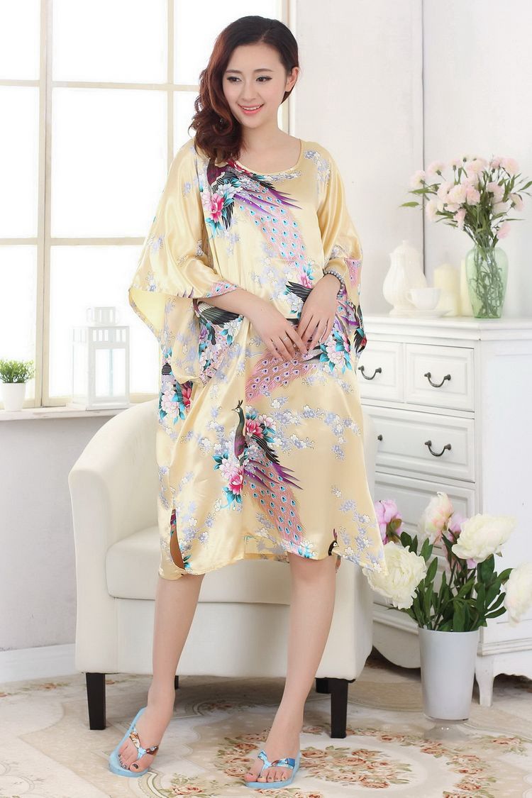 Летняя тонкая ночная рубашка с павлином из искусственного шелка, Женская свободная ночная рубашка больших размеров, халат, домашняя одежда, повседневная простая