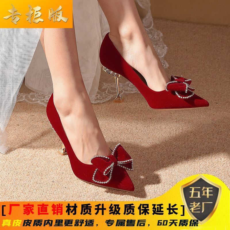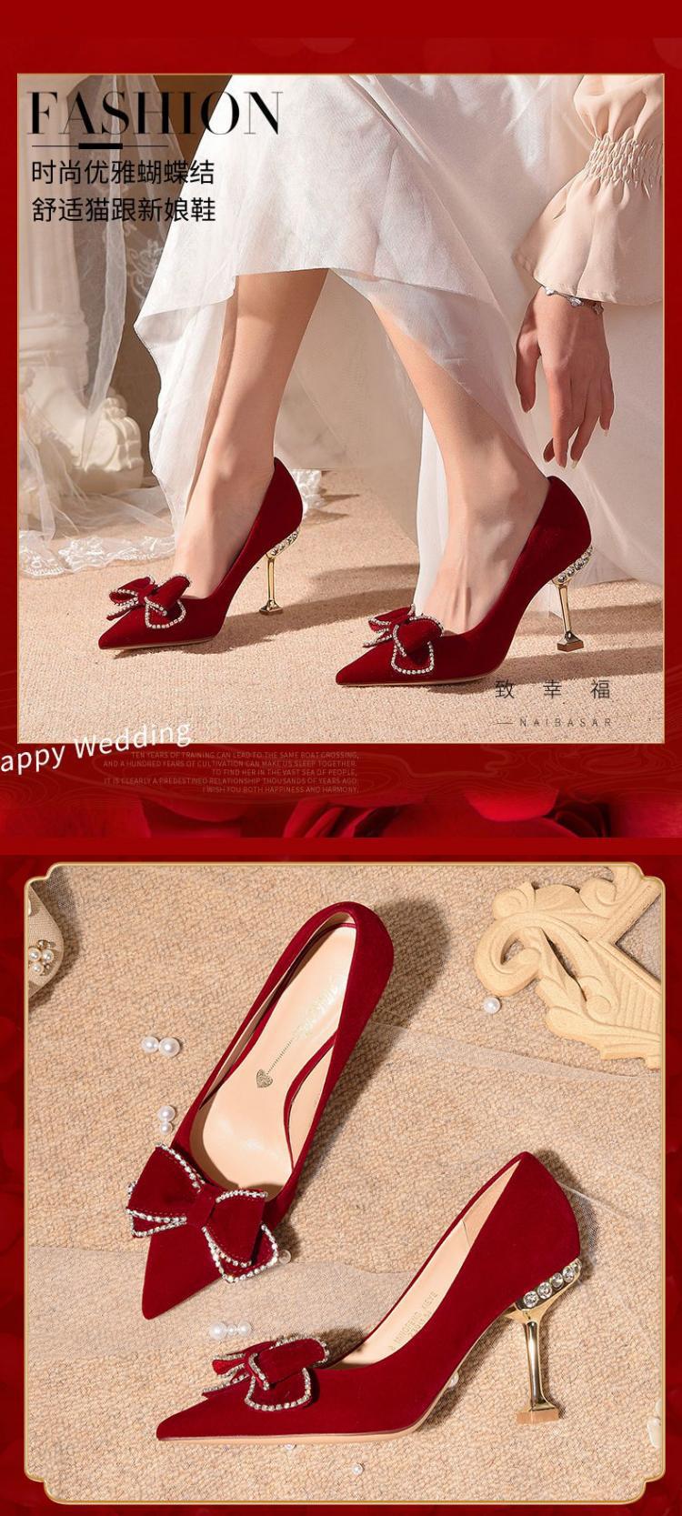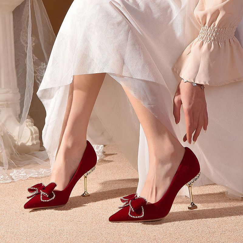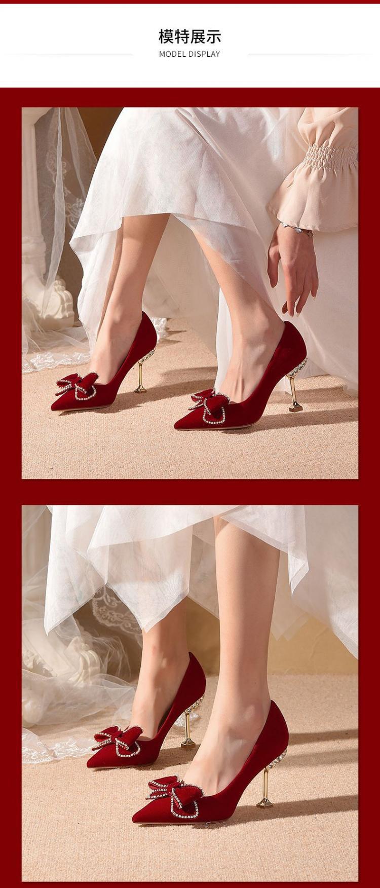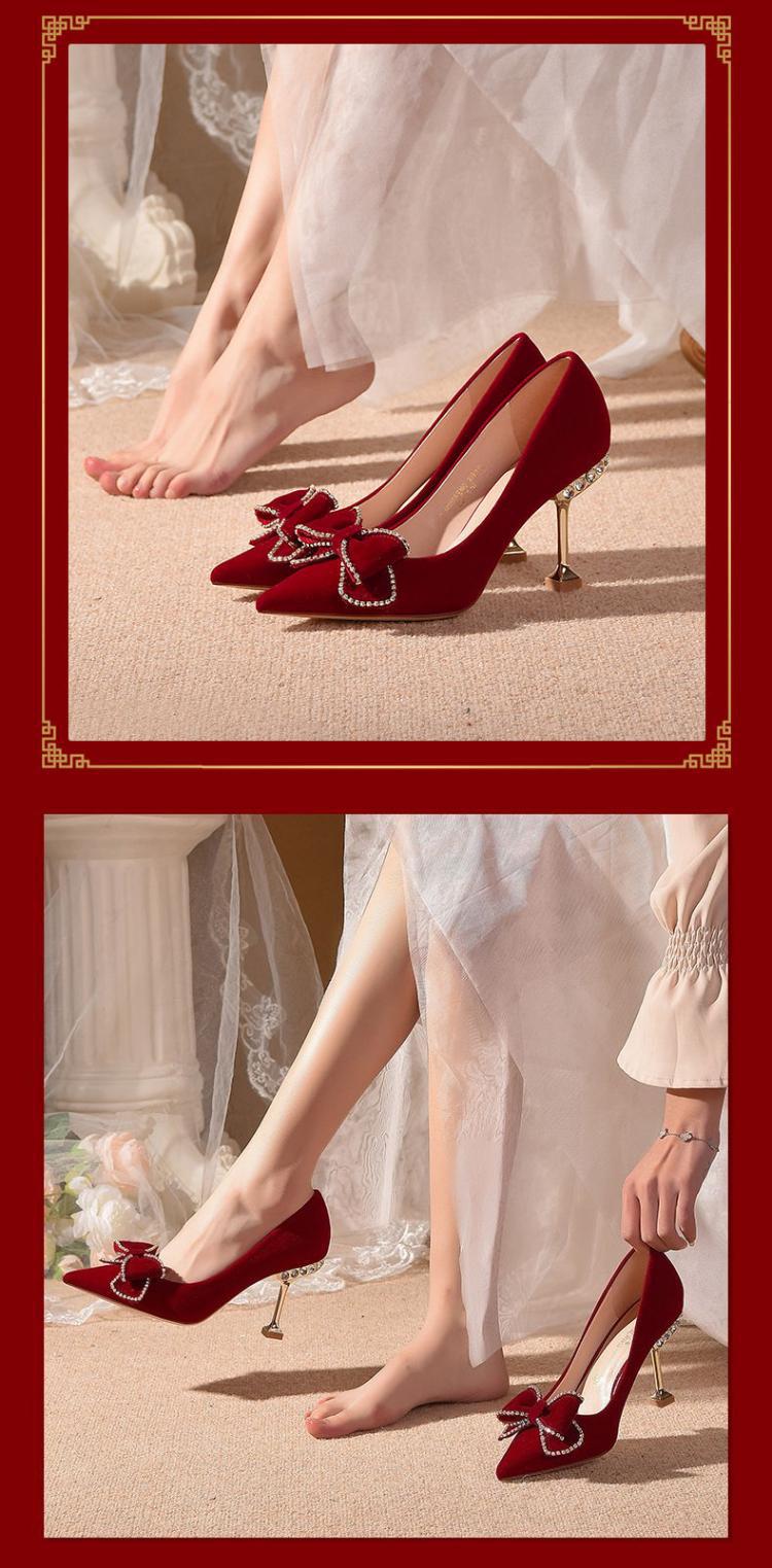 Красные свадебные туфли женские Xiuhe свадебное платье с бантом 2023 Новая Осенняя китайская обувь невесты тосты на высоком каблуке