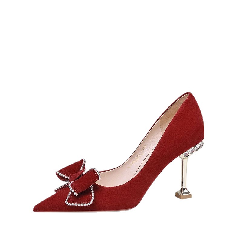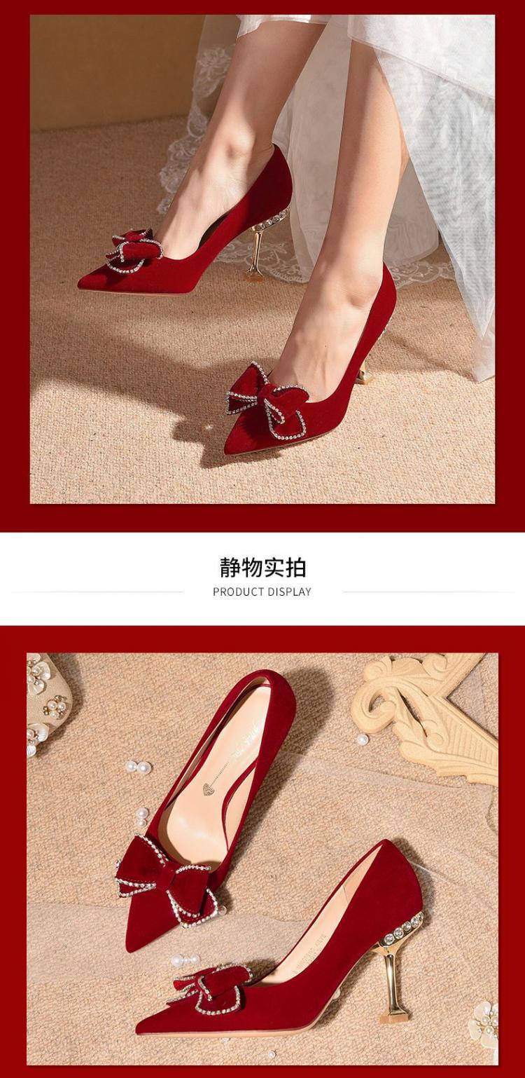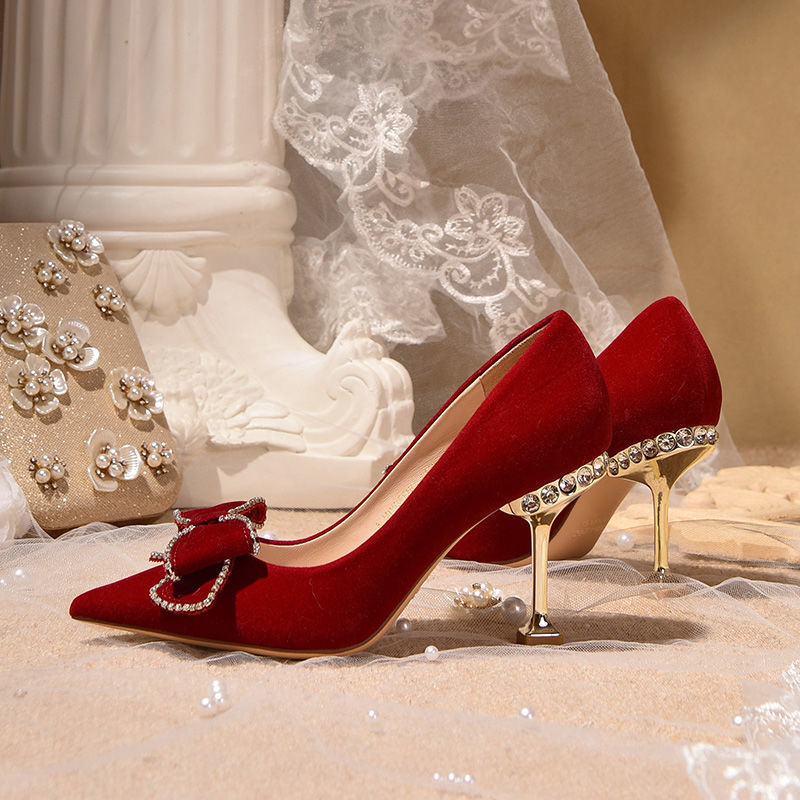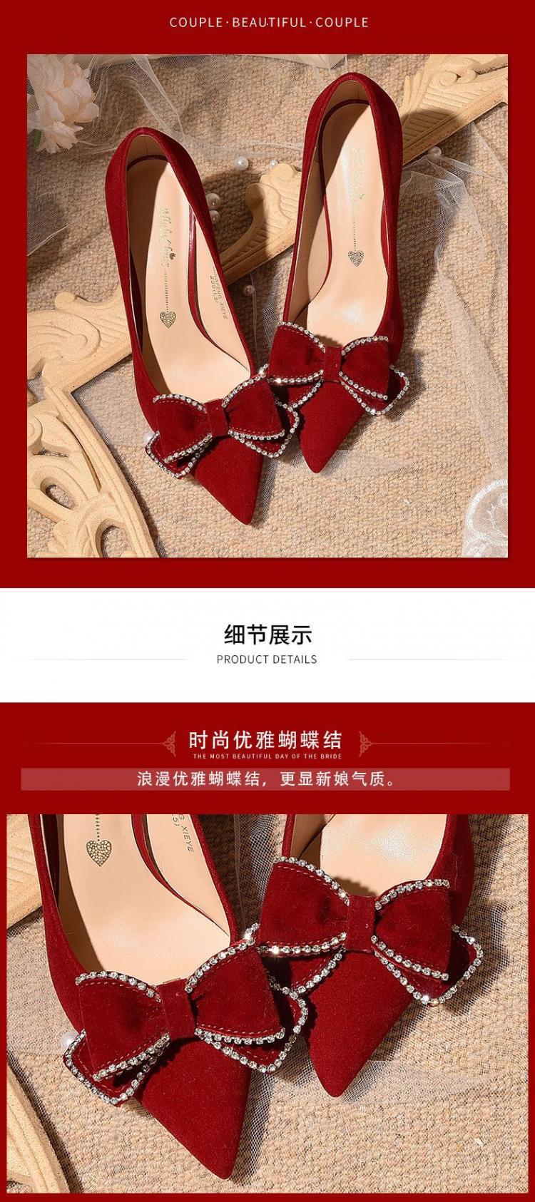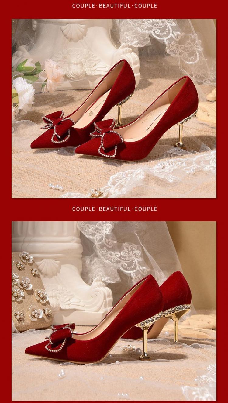 Красные свадебные туфли женские Xiuhe свадебное платье с бантом 2023 Новая Осенняя китайская обувь невесты тосты на высоком каблуке