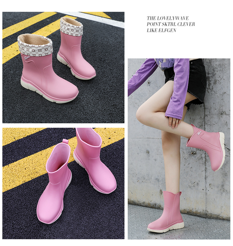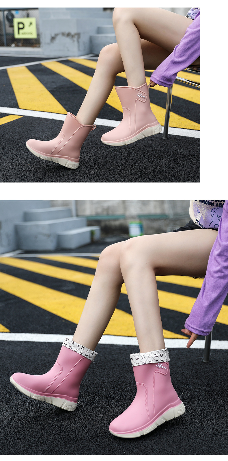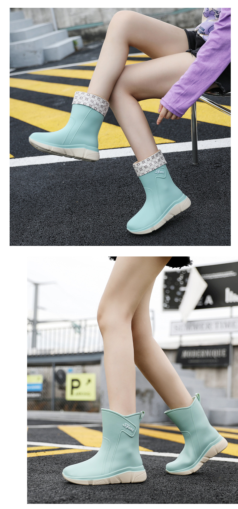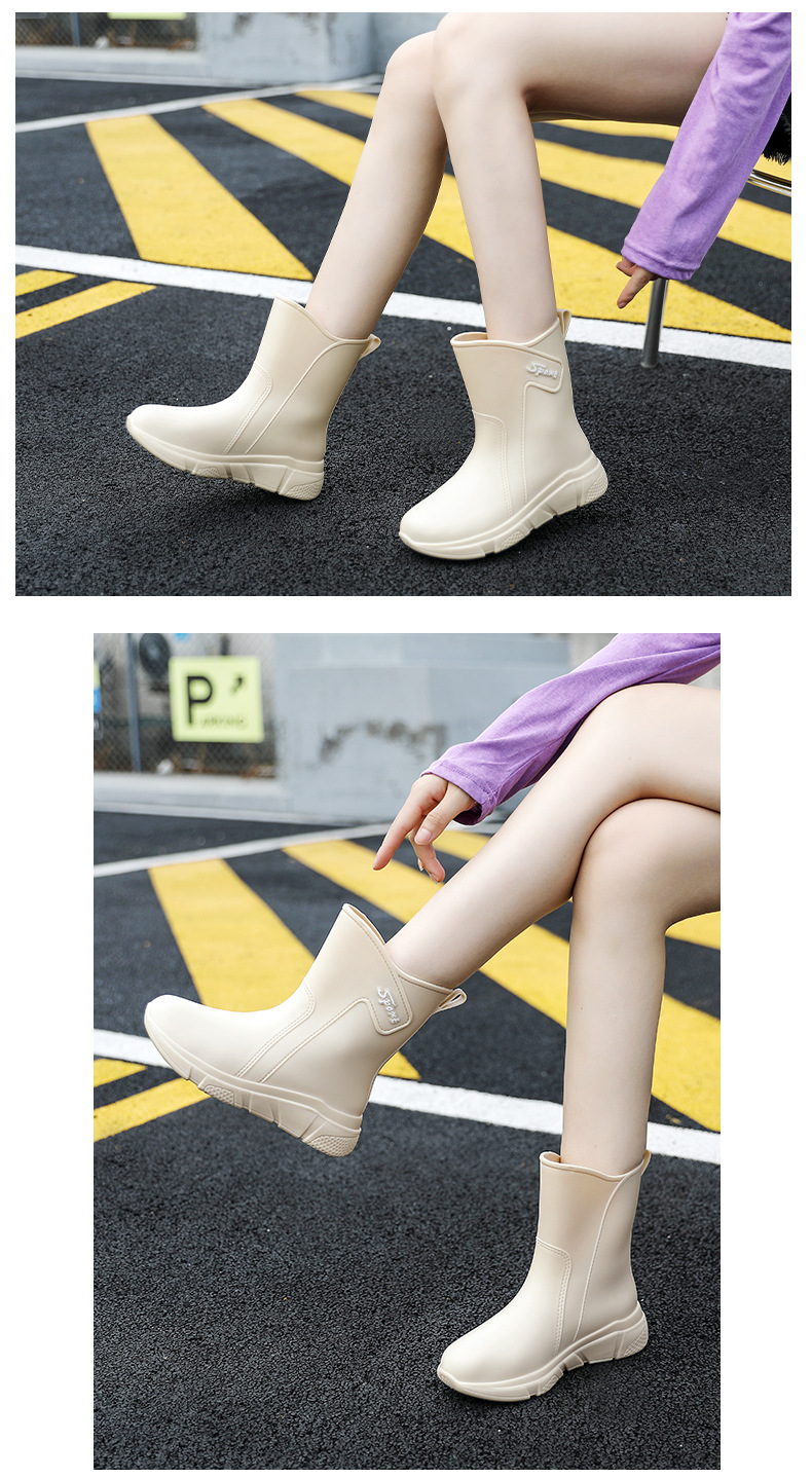 Модные резиновые сапоги, женские нескользящие износостойкие резиновые сапоги со средней трубой для взрослых, кухонная Автомойка, Студенческая непромокаемая Водная обувь на толстой подошве для женщин