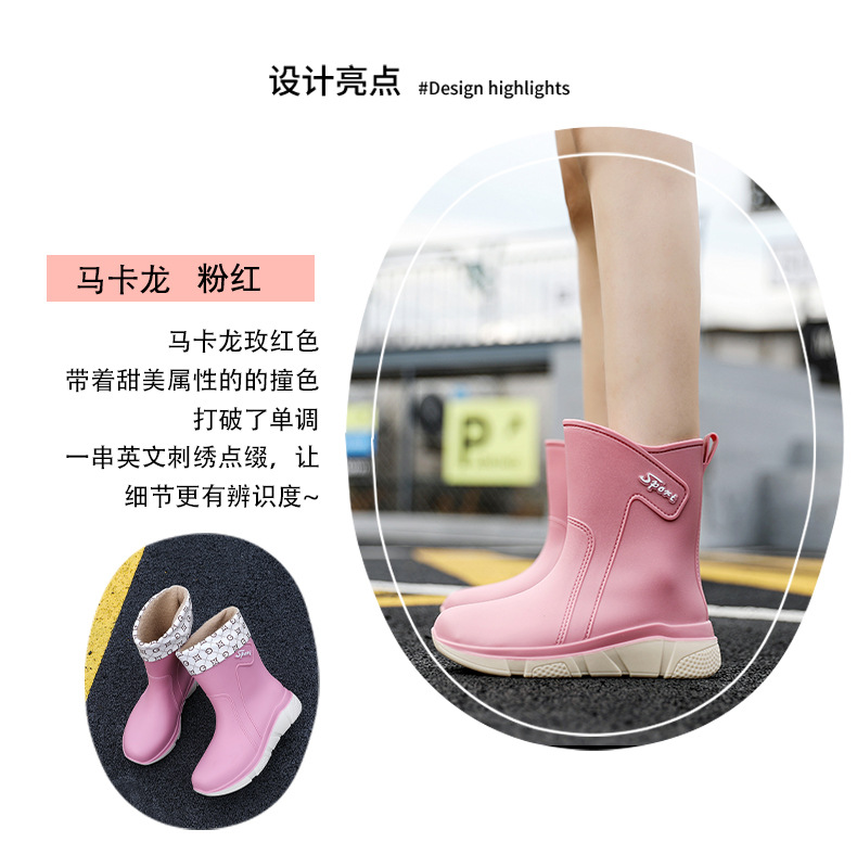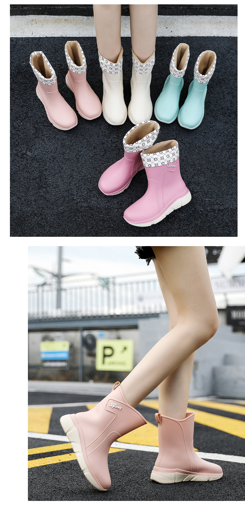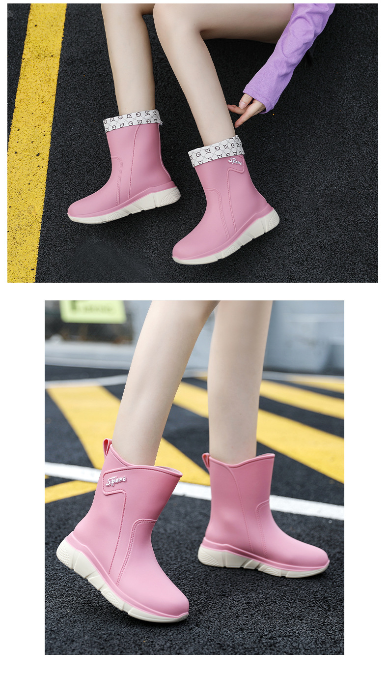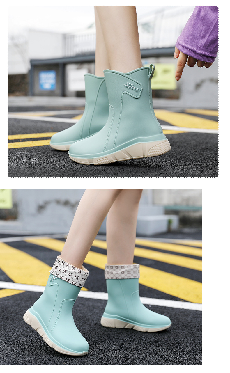 Модные резиновые сапоги, женские нескользящие износостойкие резиновые сапоги со средней трубой для взрослых, кухонная Автомойка, Студенческая непромокаемая Водная обувь на толстой подошве для женщин
