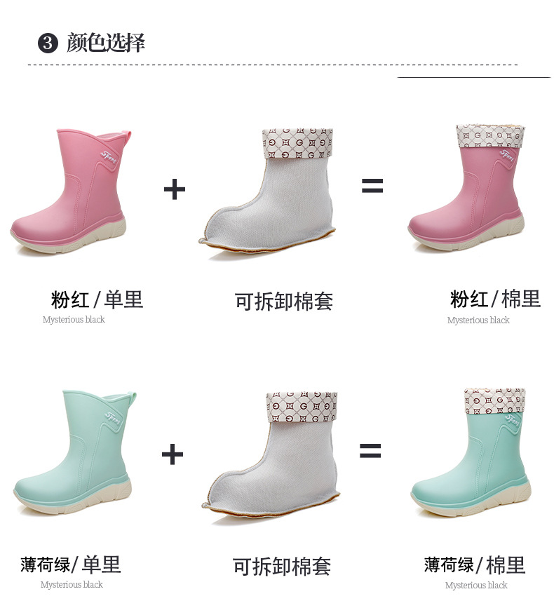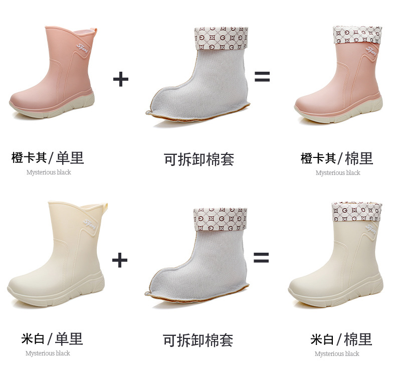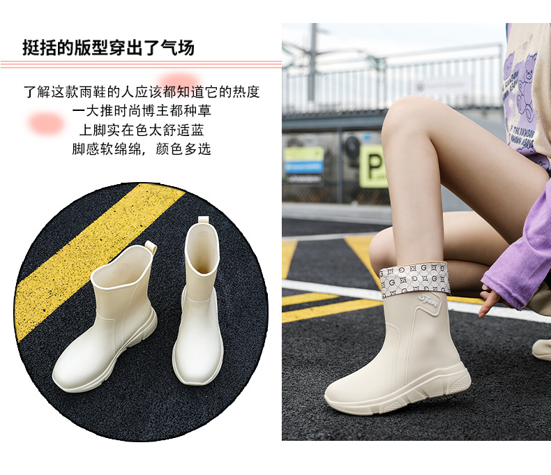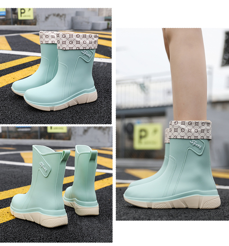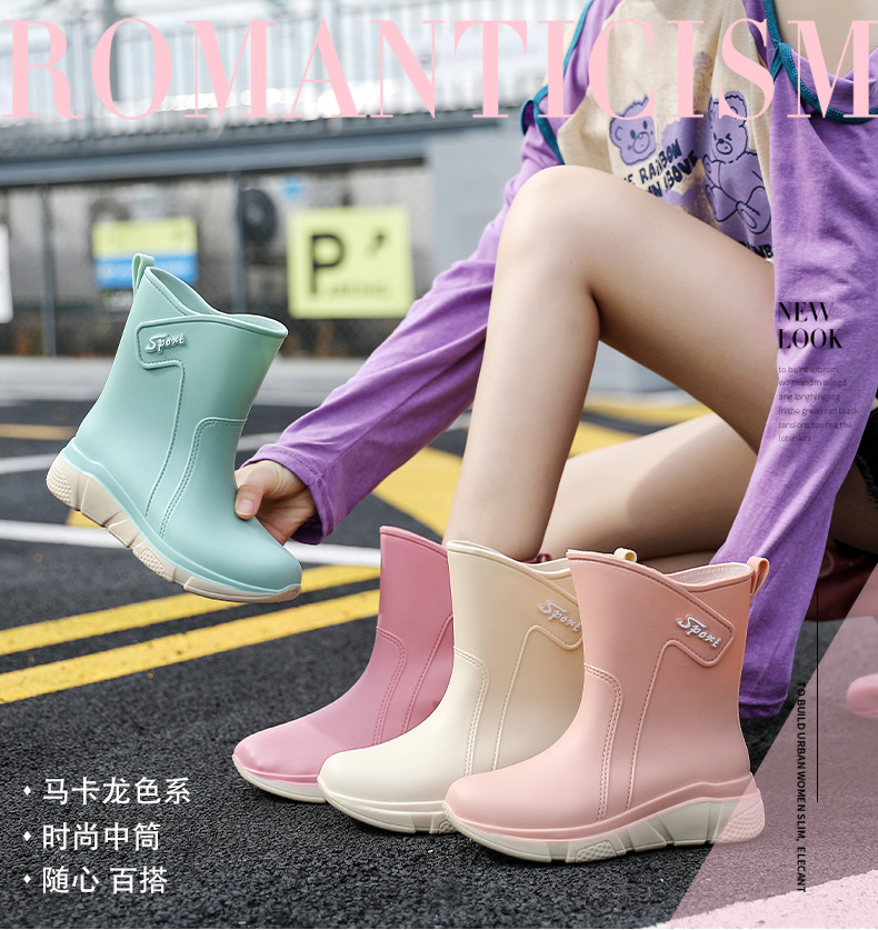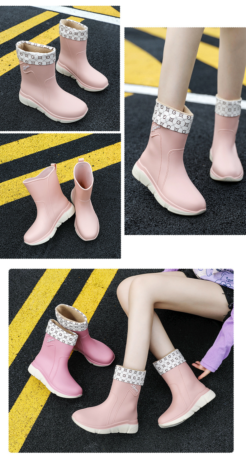 Модные резиновые сапоги, женские нескользящие износостойкие резиновые сапоги со средней трубой для взрослых, кухонная Автомойка, Студенческая непромокаемая Водная обувь на толстой подошве для женщин
