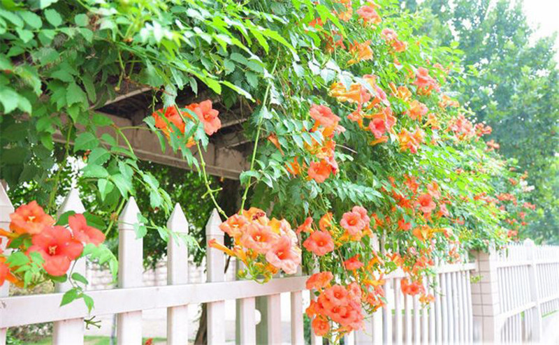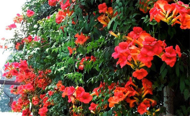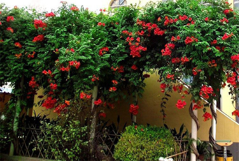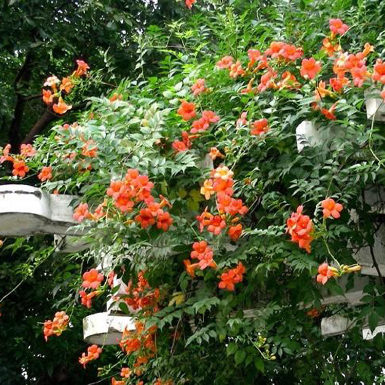 Кампсис Рассада Двор Стена Лезвие Виноградные растения Морозостойкие Висячие цветы Пушка Цветет Американский кемпинг