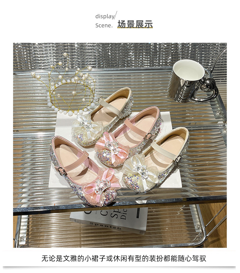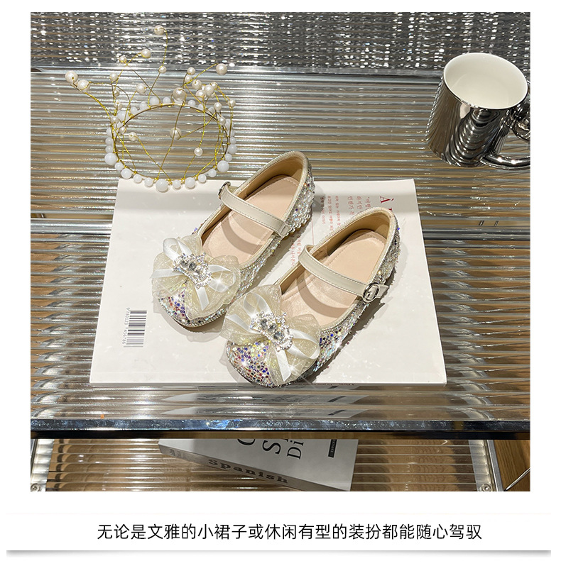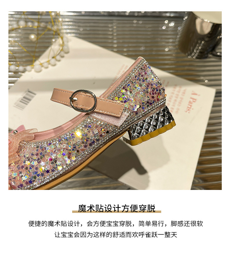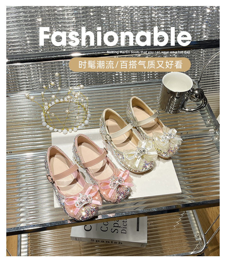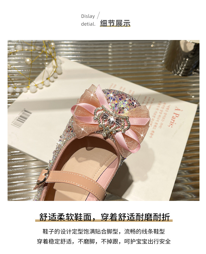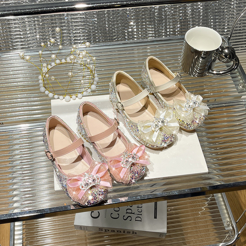 Туфли принцессы для девочек, новинка весны 2024, модные туфли принцессы с кристаллами Аиши, детская обувь на нескользящей мягкой подошве