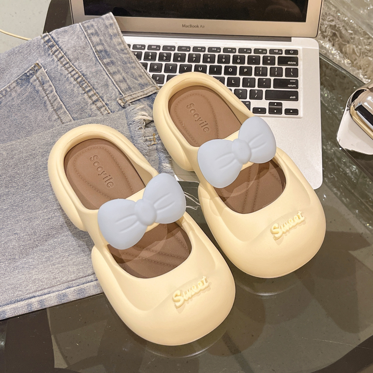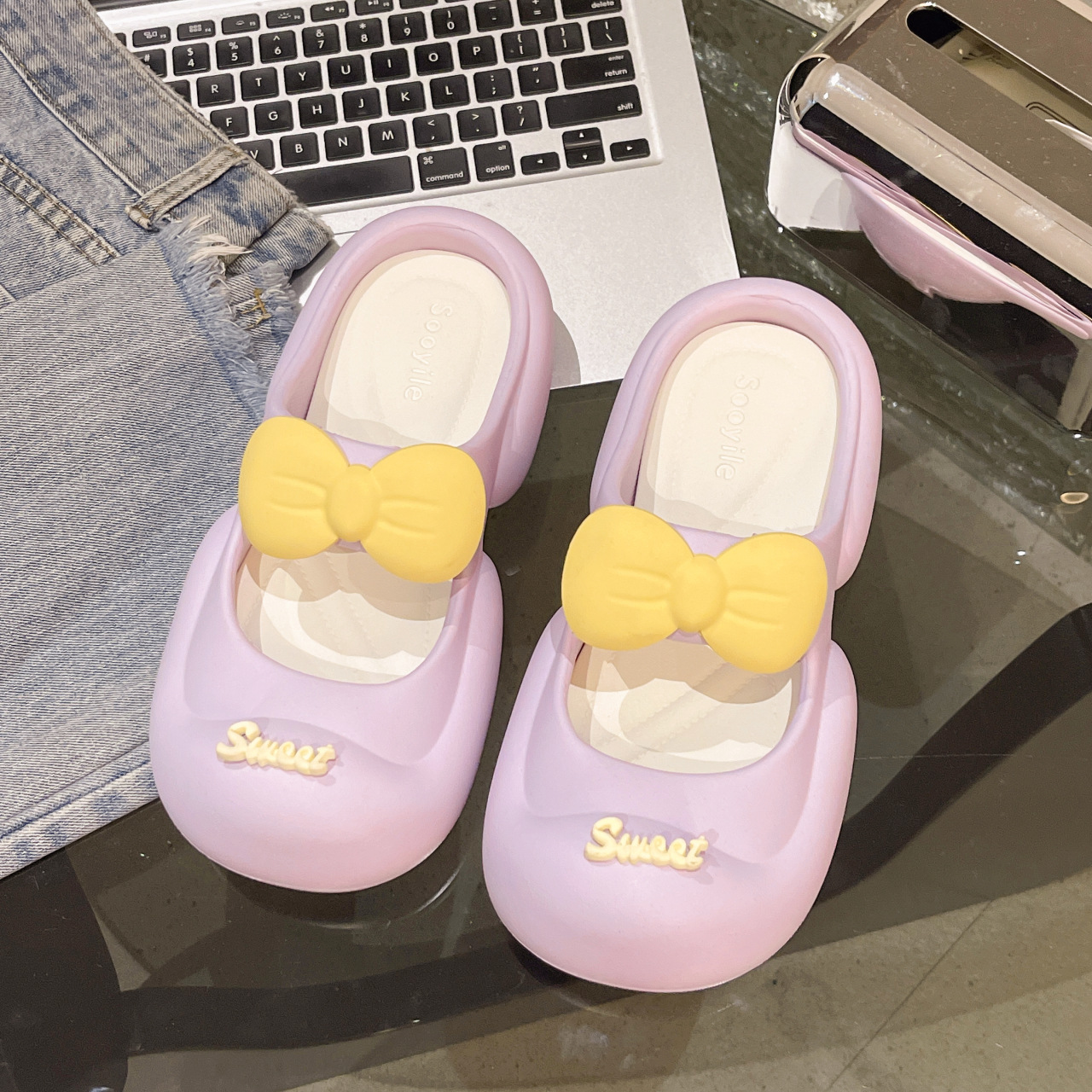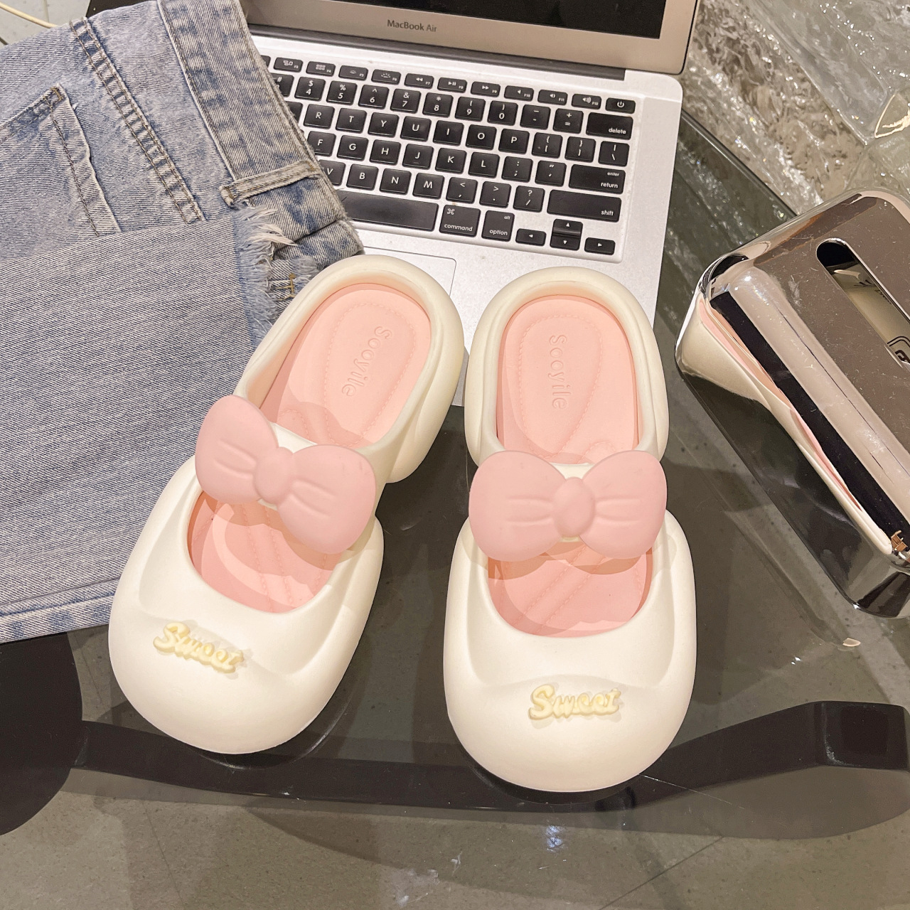 Высококачественные женские пещерные туфли с бантом, новое летнее поступление, простые Нескользящие домашние сандалии Baotou на толстой подошве для верхней одежды