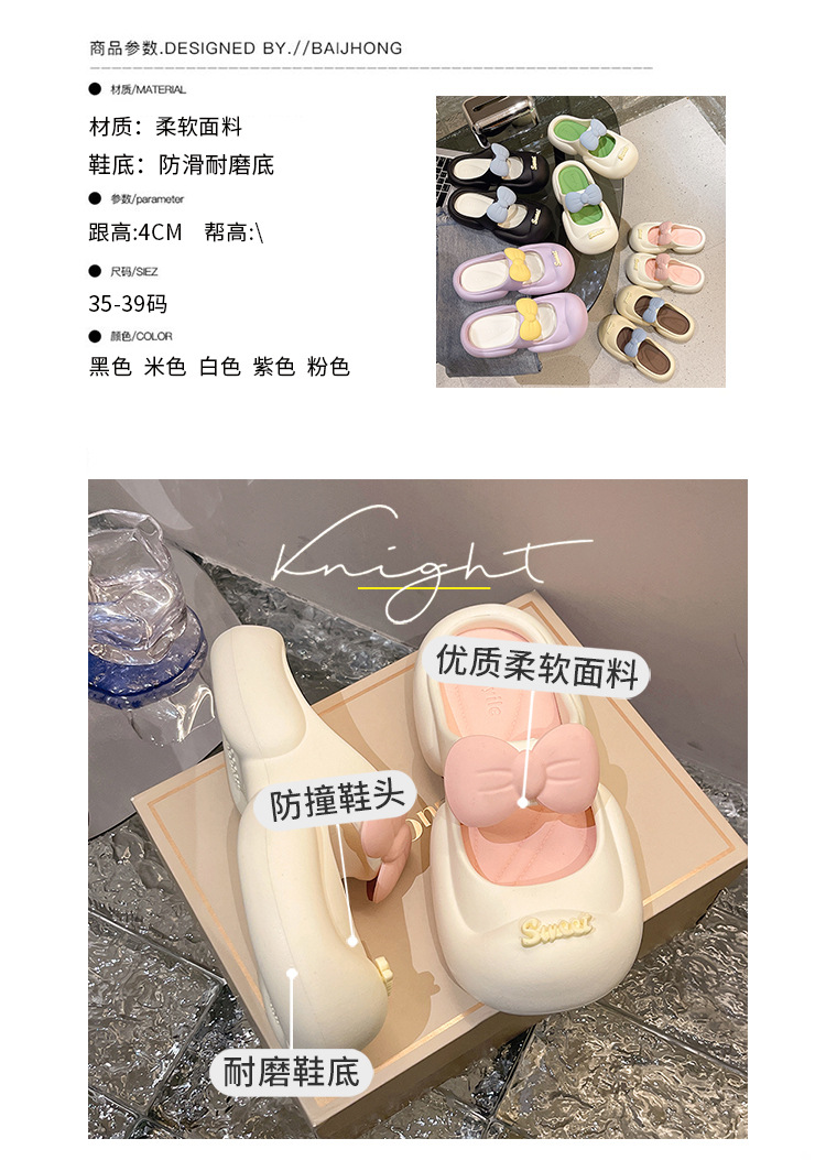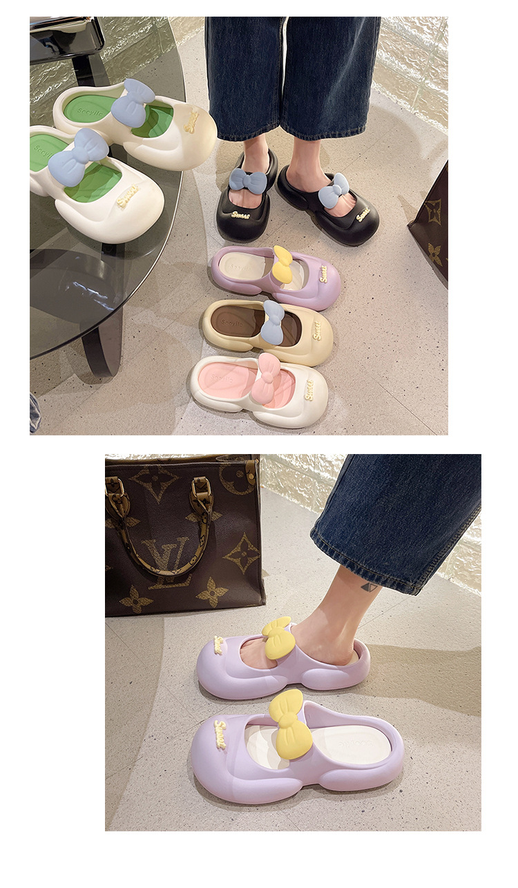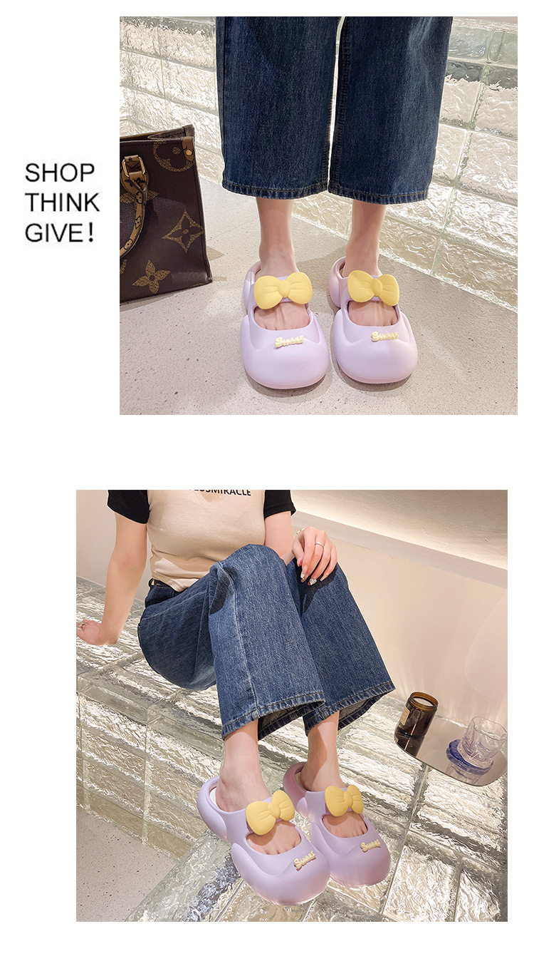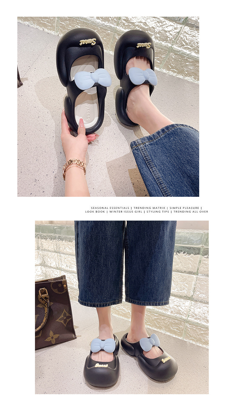 Высококачественные женские пещерные туфли с бантом, новое летнее поступление, простые Нескользящие домашние сандалии Baotou на толстой подошве для верхней одежды