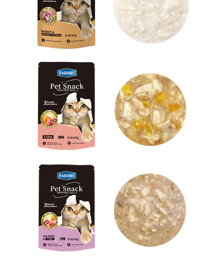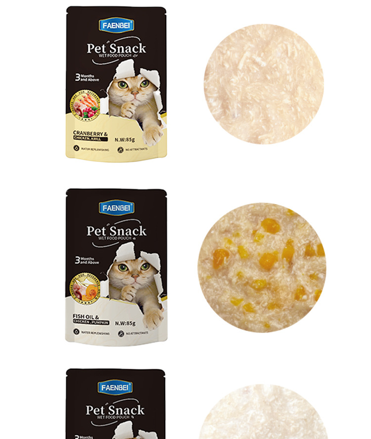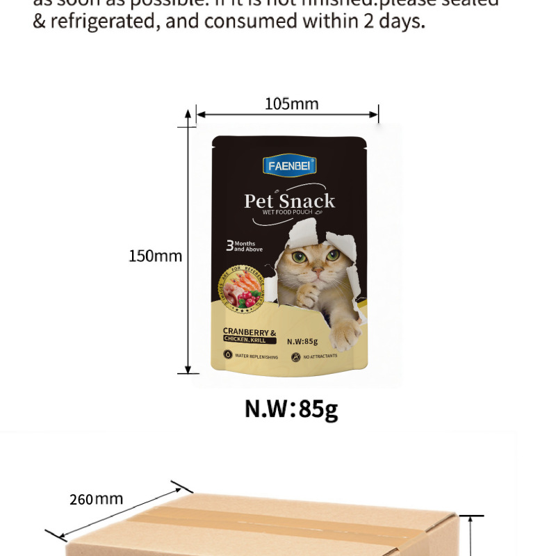 FAENBEI лакомства для домашних животных, пакетик с влажным кормом, питательные лакомства для кошек для взрослых и молодых кошек, английская трансграничная электронная коммерция, 85 г