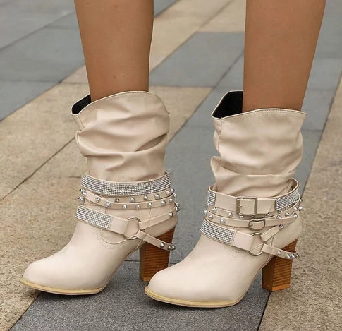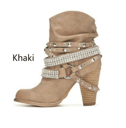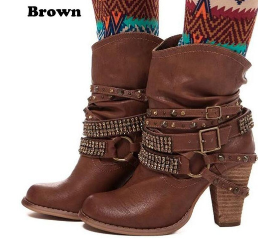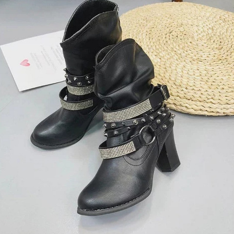 Внешняя торговля Горячие европейские и американские женские сапоги, обувь на толстом каблуке, высокие каблуки, короткие сапоги с круглым носком, женские сапоги со стразами и заклепками, поколение волос