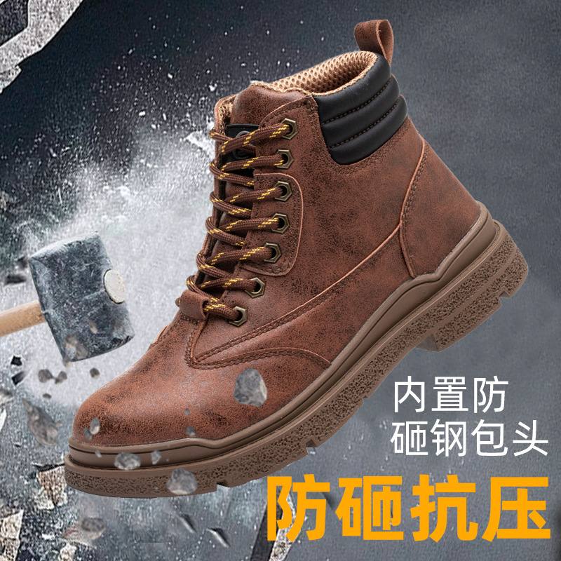 Защитная обувь в новом стиле, Мужская усовершенствованная осенне-зимняя защитная обувь со стальным носком и защитой от ударов, нескользящая Рабочая обувь с высоким верхом