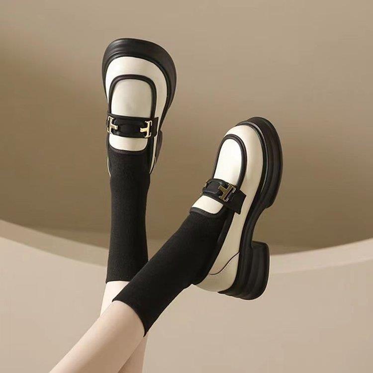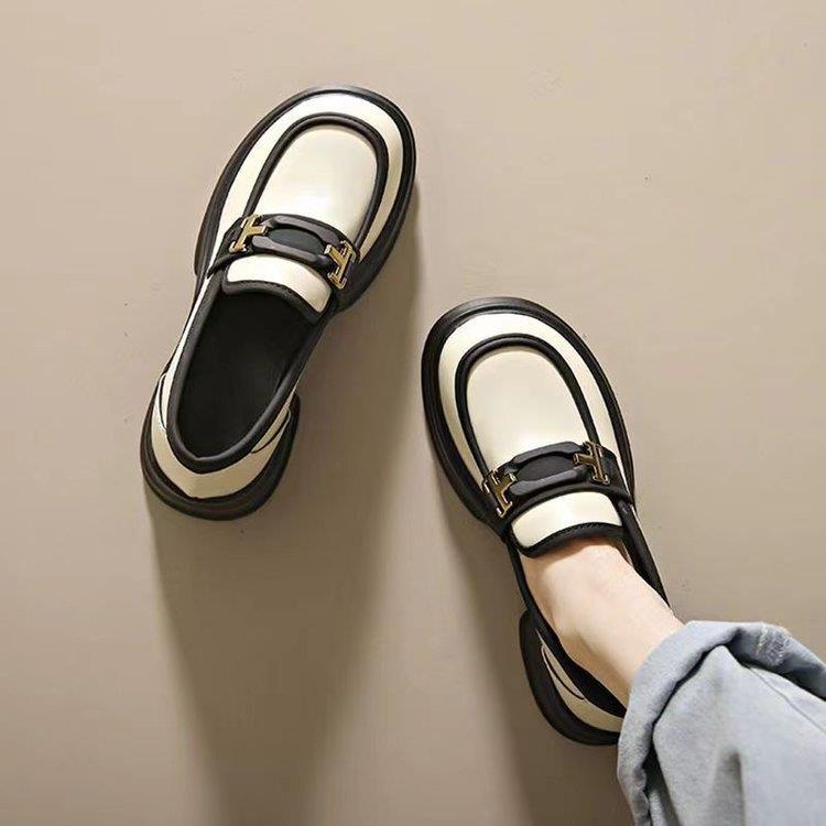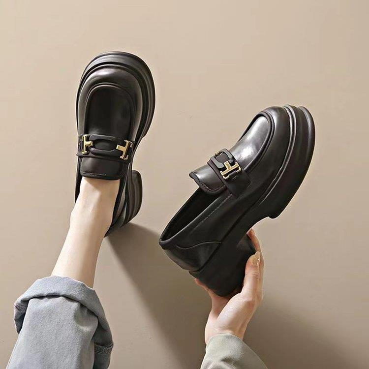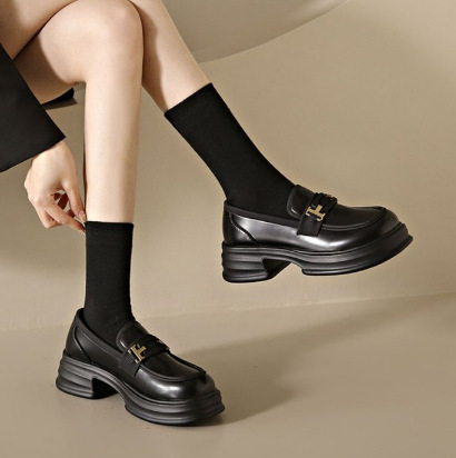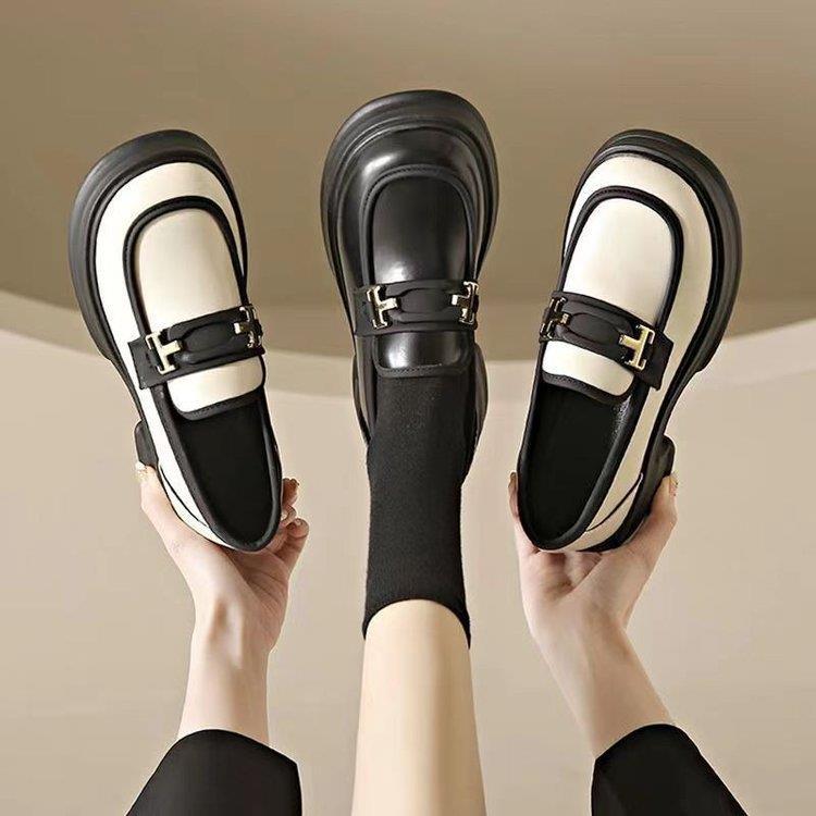 Женские лоферы на толстой подошве, осень 2024, новый стиль, черные маленькие кожаные туфли на мягкой подошве во французском британском стиле