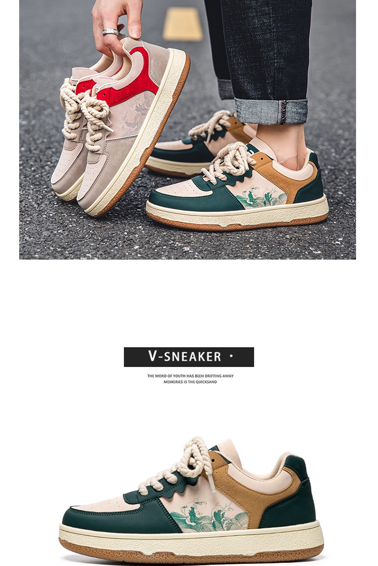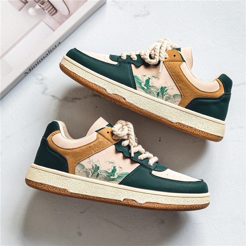 Национальная приливная обувь для мужчин 2025 новый корейский стиль ретро повседневная мужская обувь с цветным принтом на открытом воздухе студенческая спортивная обувь
