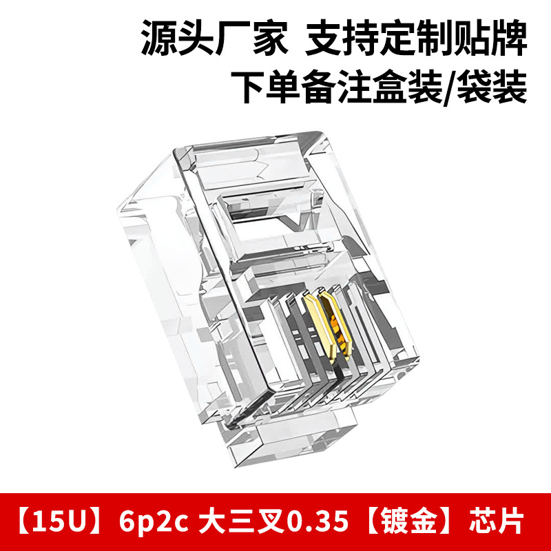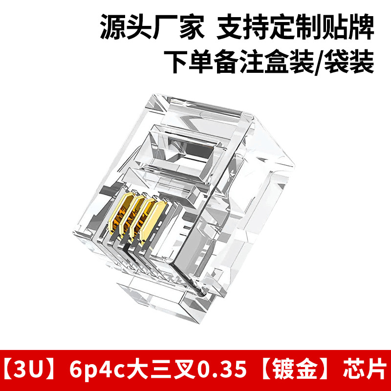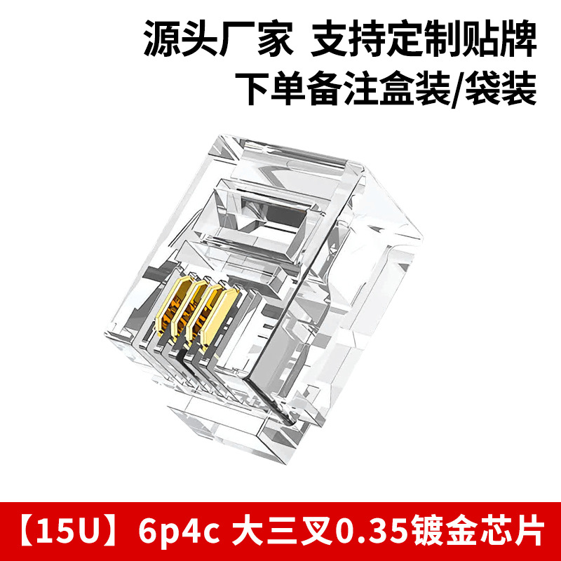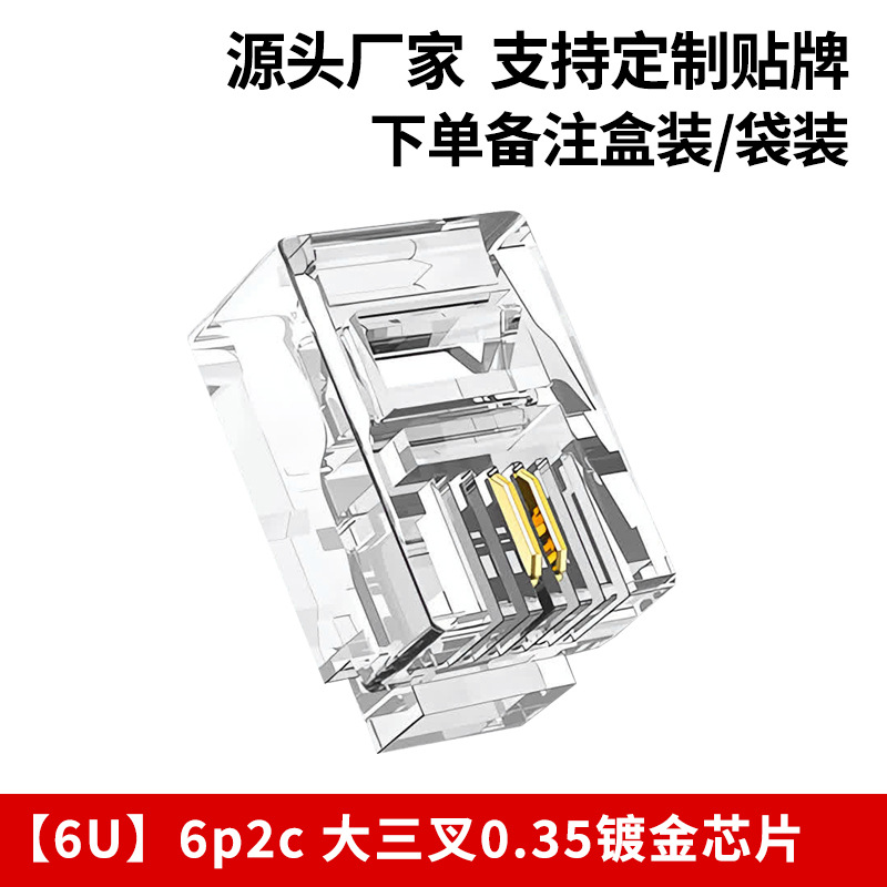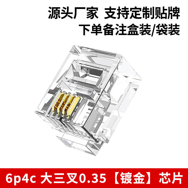 Телефонная хрустальная головка 6p4c, прямые поставки производителя 6p2c, большая трехконтактная позолоченная хрустальная головка rj11, четырехжильная телефонная хрустальная головка