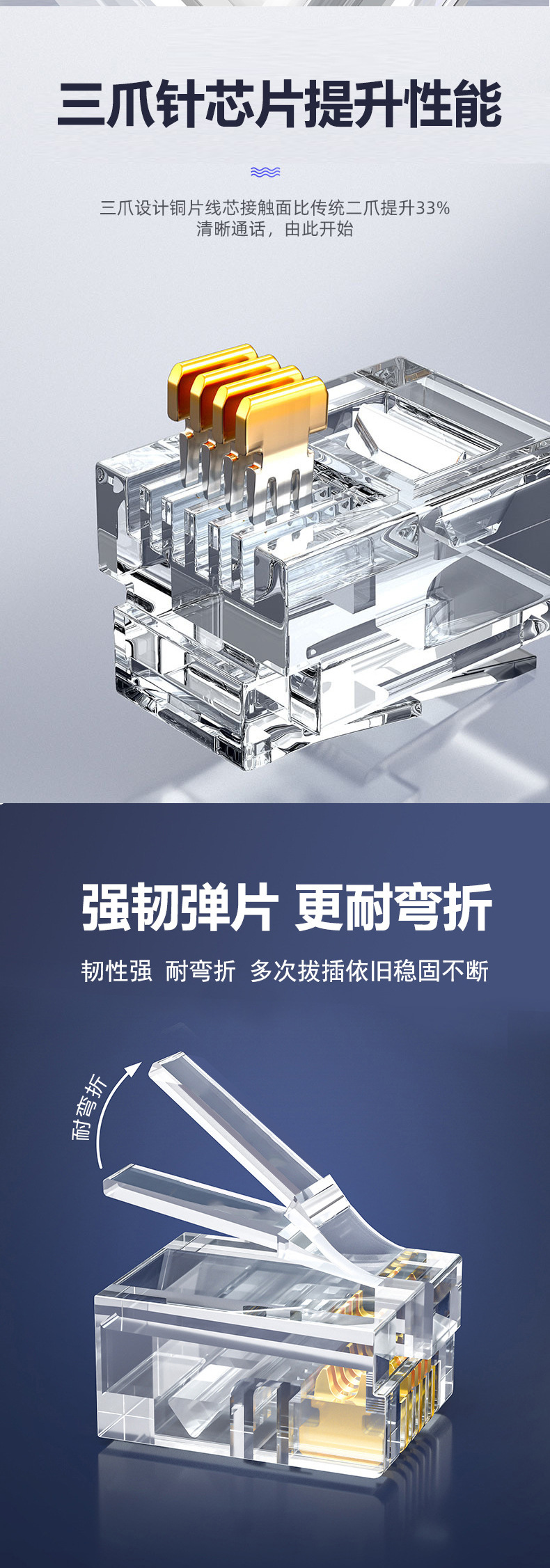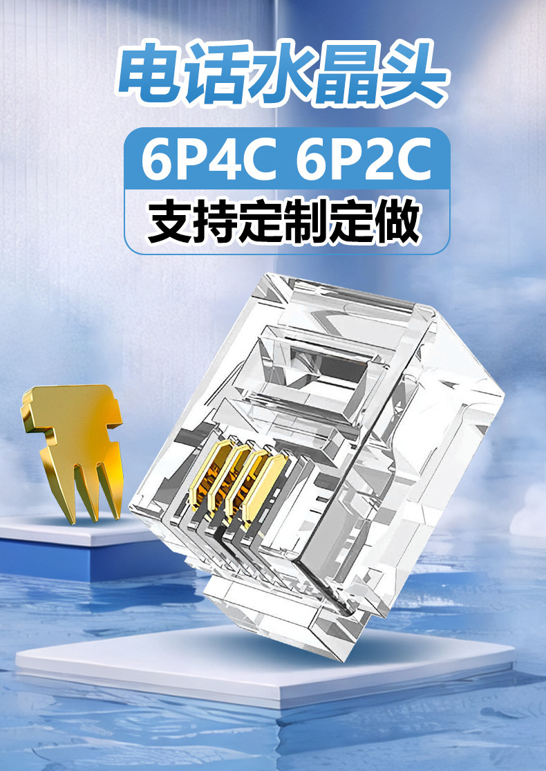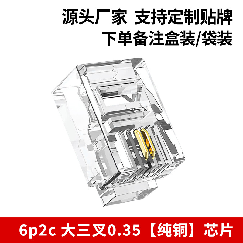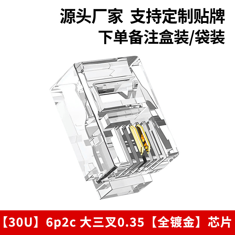 Телефонная хрустальная головка 6p4c, прямые поставки производителя 6p2c, большая трехконтактная позолоченная хрустальная головка rj11, четырехжильная телефонная хрустальная головка