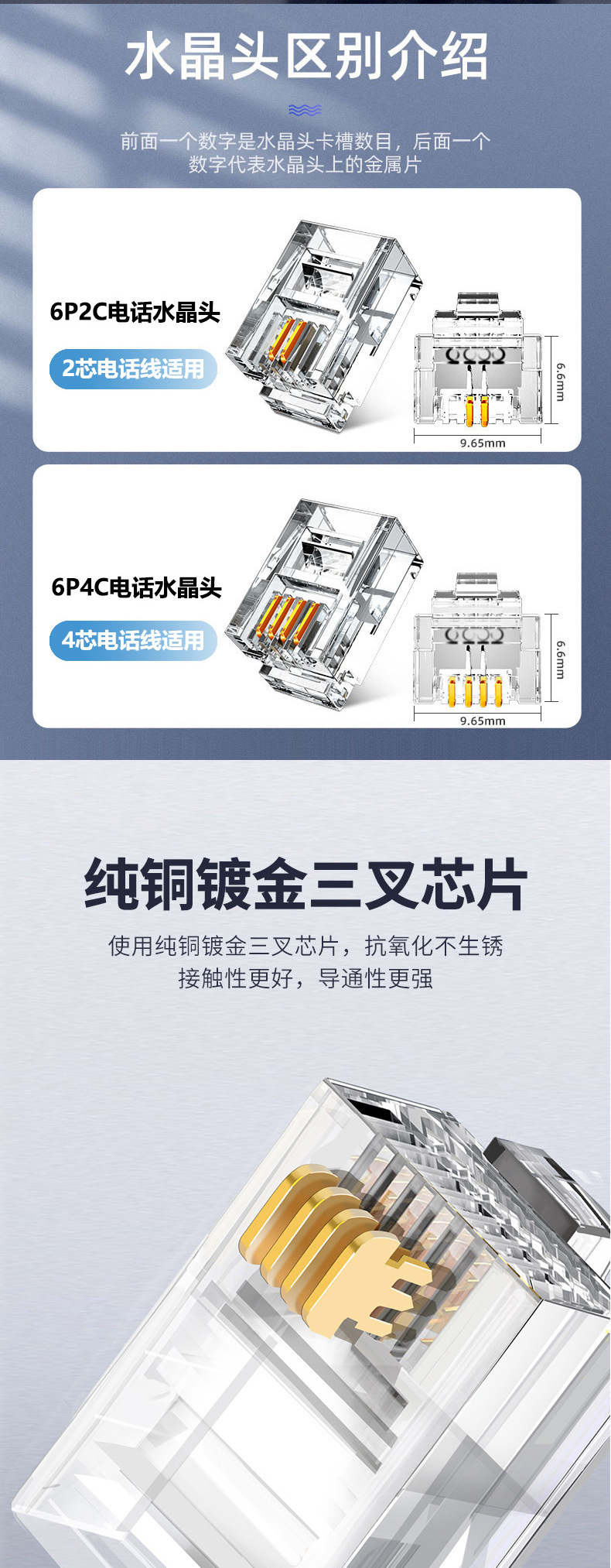 6-pin Rj11 crystal head