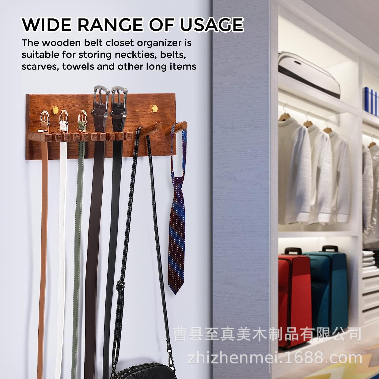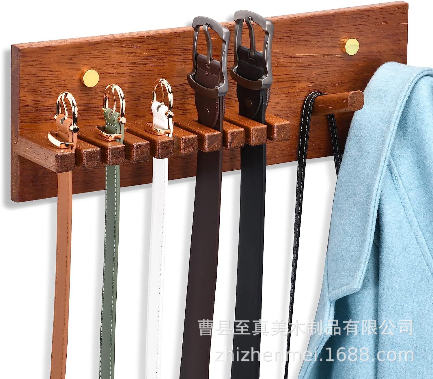 Деревянный настенный органайзер для ремня ленточный проход Настенная вешалка для ремня для гвоздей вращающийся крючок для хранения ремня деревянная стойка
