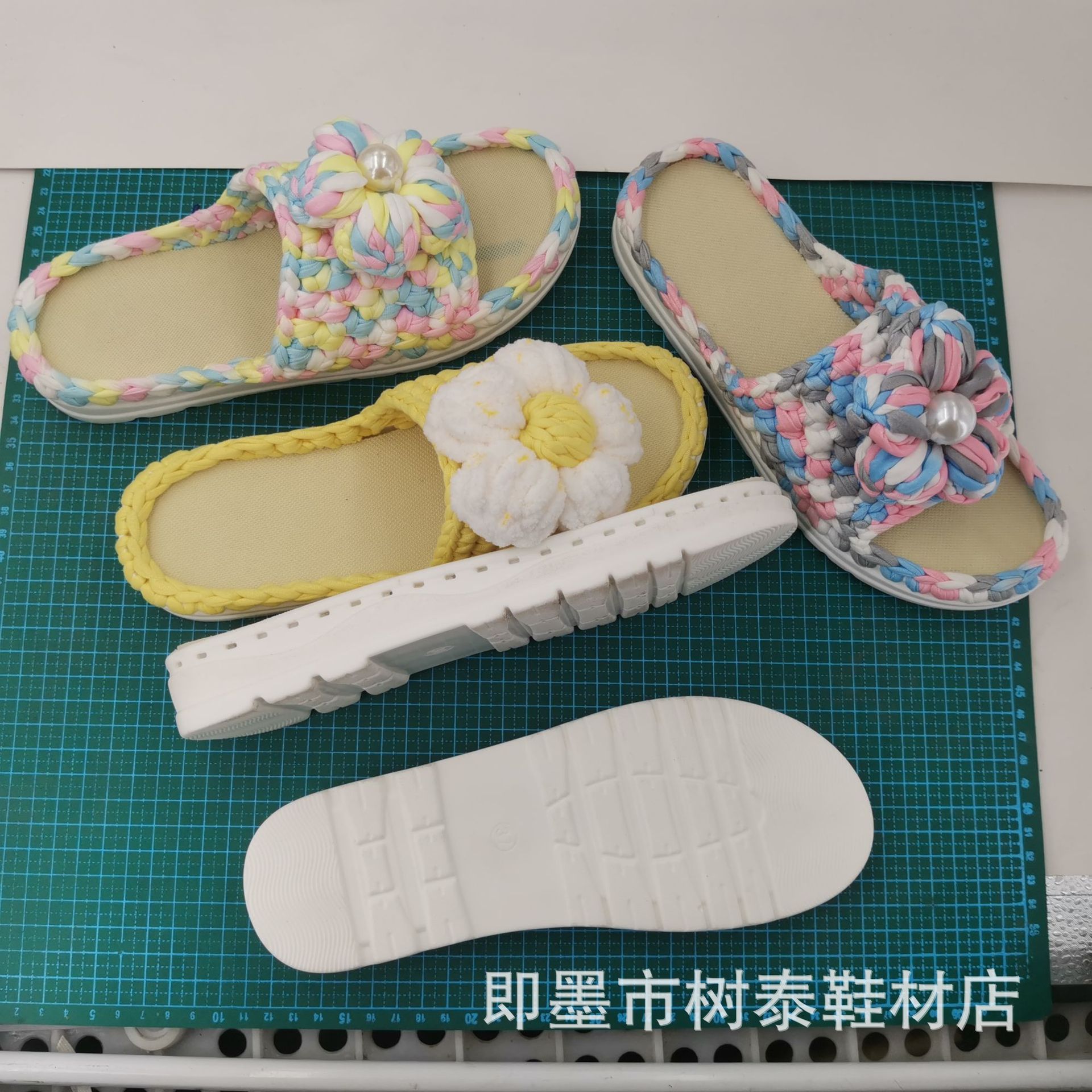 Shutai Материал для обуви Тканая сказочная нижняя ткань в полоску Обувь с крючком Летние тапочки с слоеным цветком Нижняя часть Ледяная полоса Шерсть Говяжье сухожилище Подошва