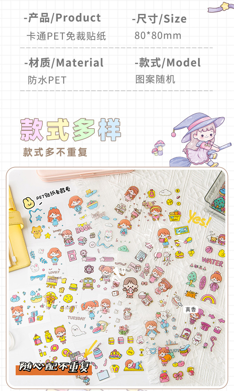 Декоративные прозрачные наклейки из ПЭТ для детского дневника, милые наклейки для творчества, наклейки для детских бутылочек с водой