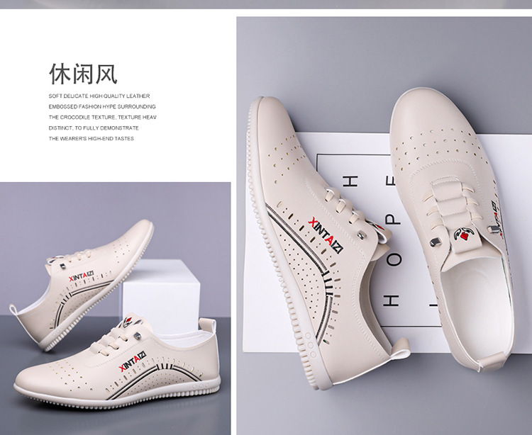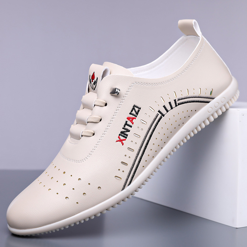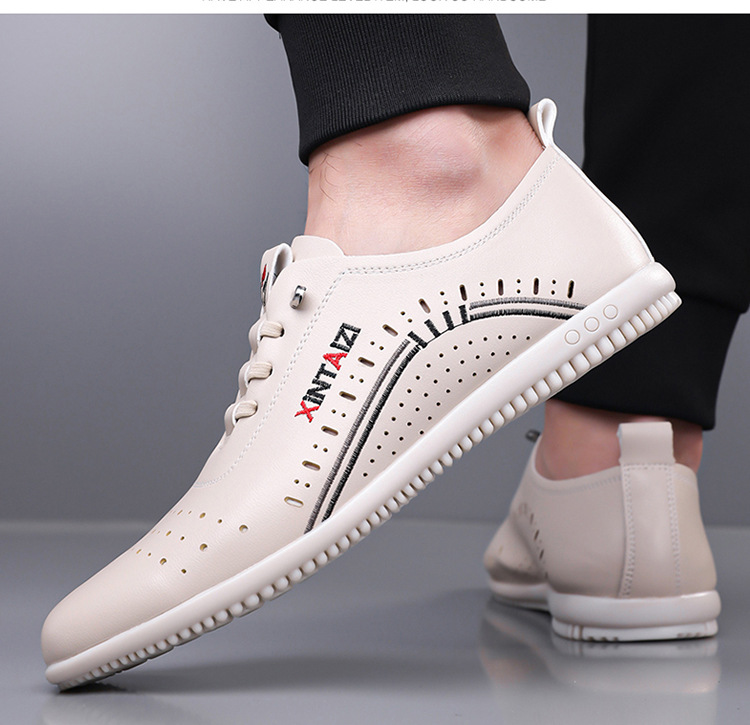 2023 весенне-летняя новая мужская деловая повседневная кожаная обувь, Мужская мягкая кожаная обувь с мягкой подошвой, белые туфли, левая обувь 6889