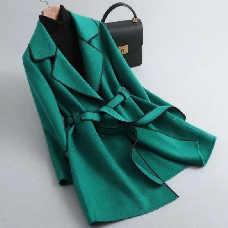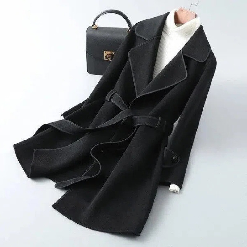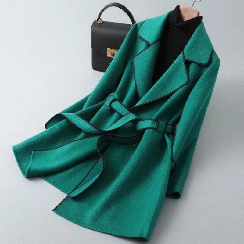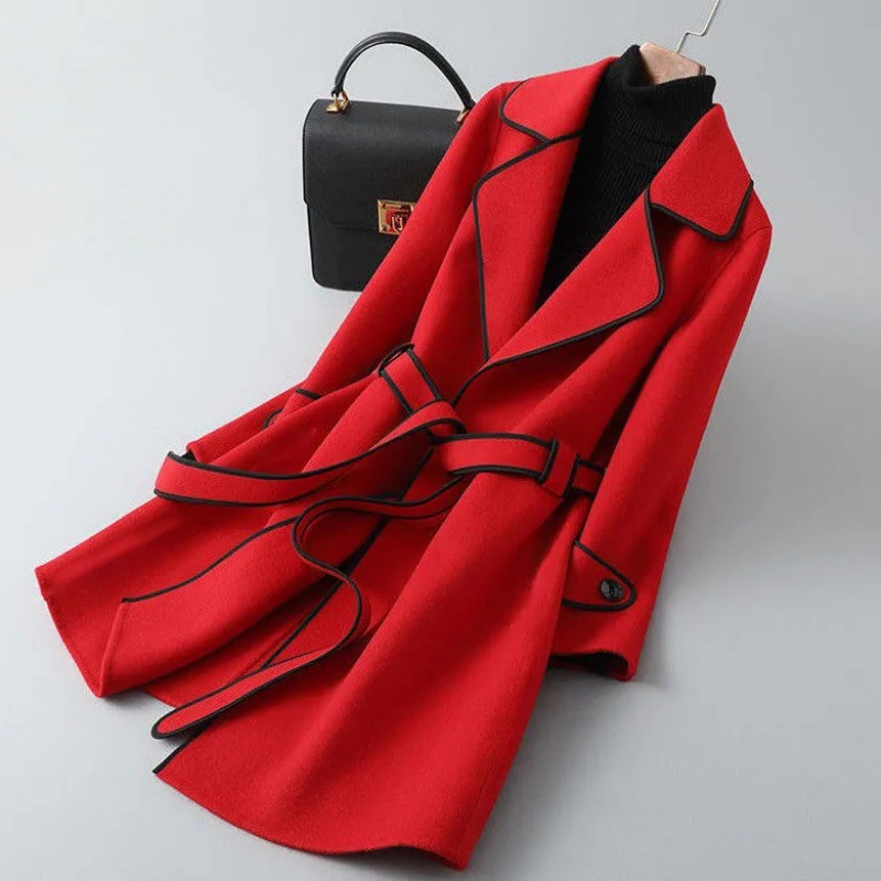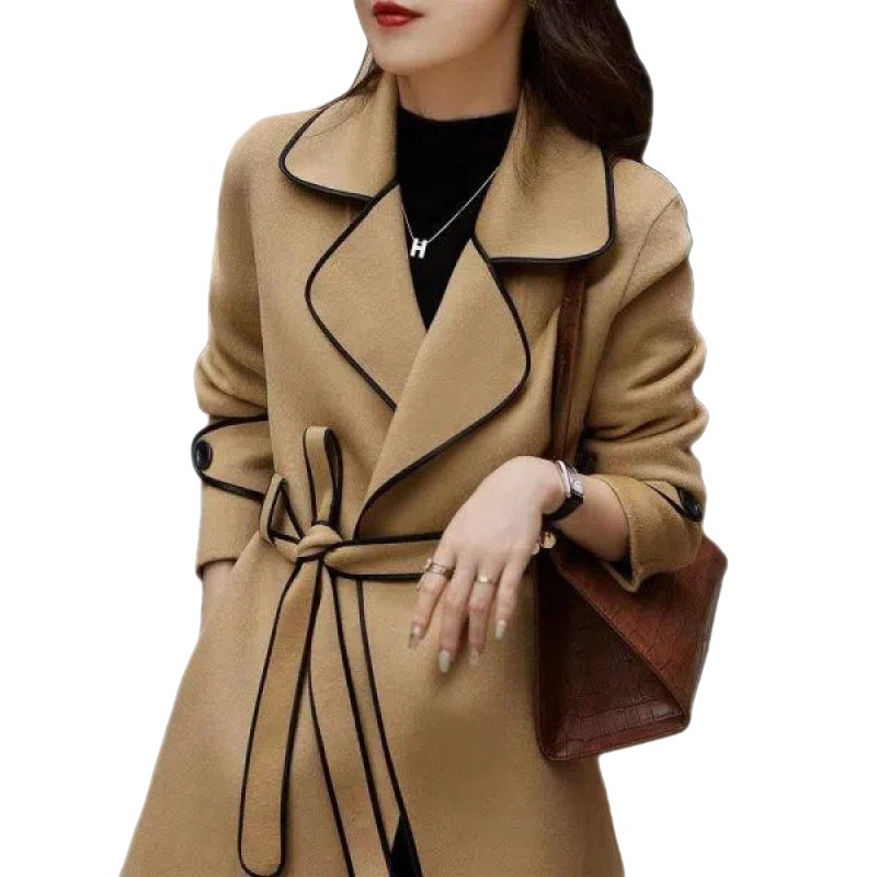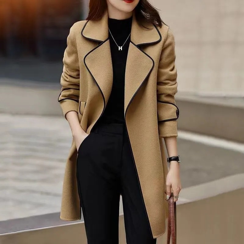 Женское трансграничное плюшевое пальто в Корейском стиле, приталенное кашемировое пальто в западном стиле, шерстяное пальто средней длины контрастных цветов, в западном стиле