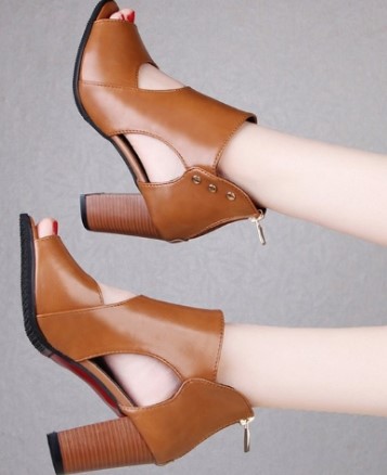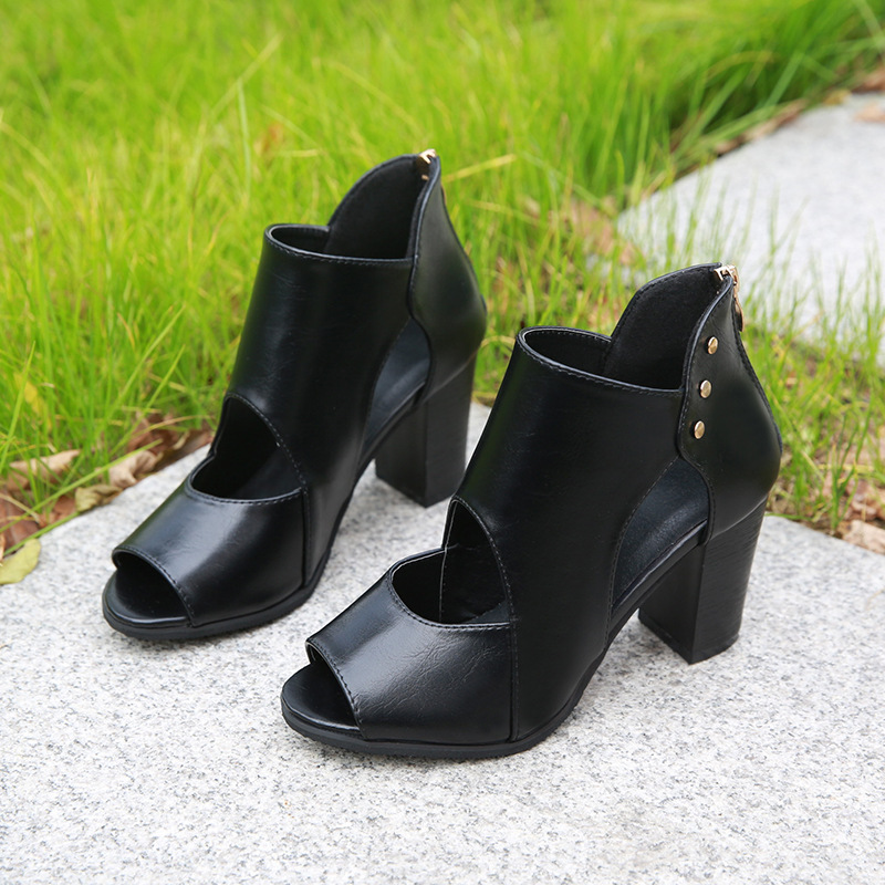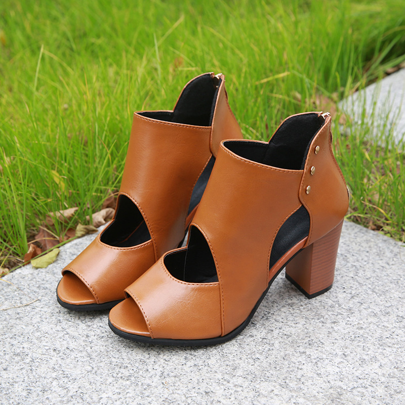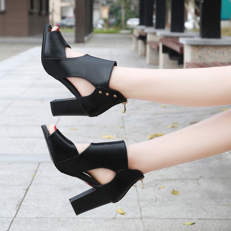 Новые сексуальные римские сандалии на высоком каблуке с круглым носком, Женская трансграничная Внешняя торговля, большие размеры, ретро-молния сзади, высокие каблуки в наличии