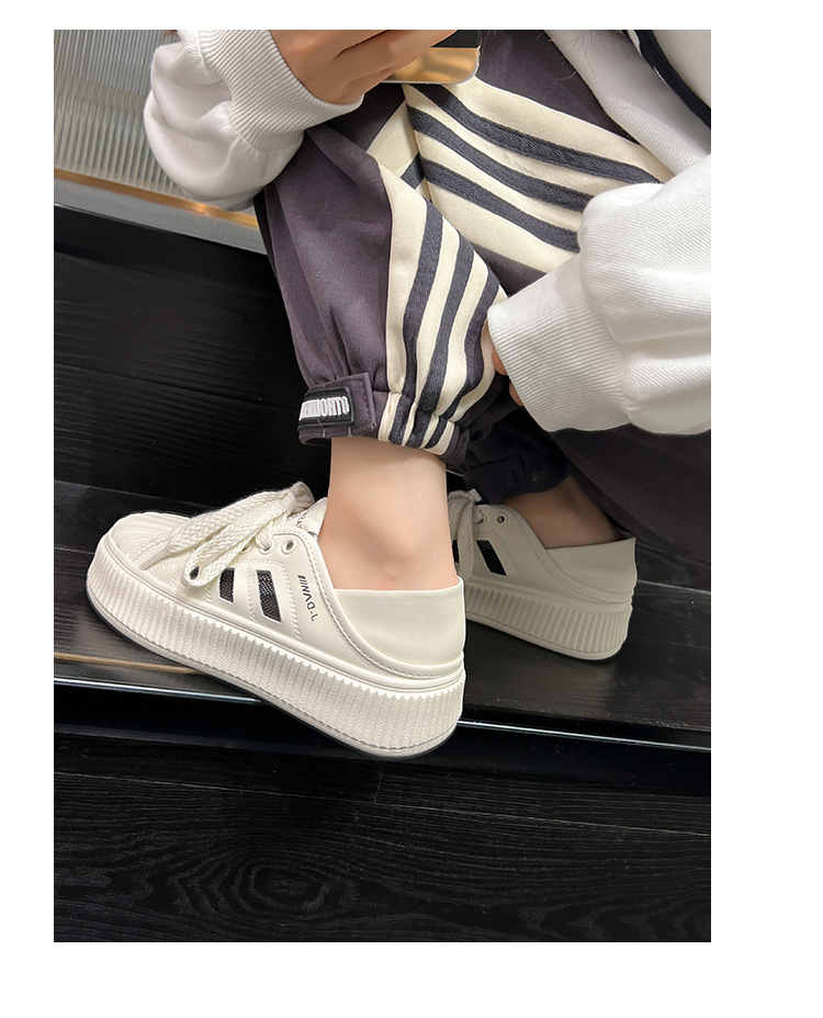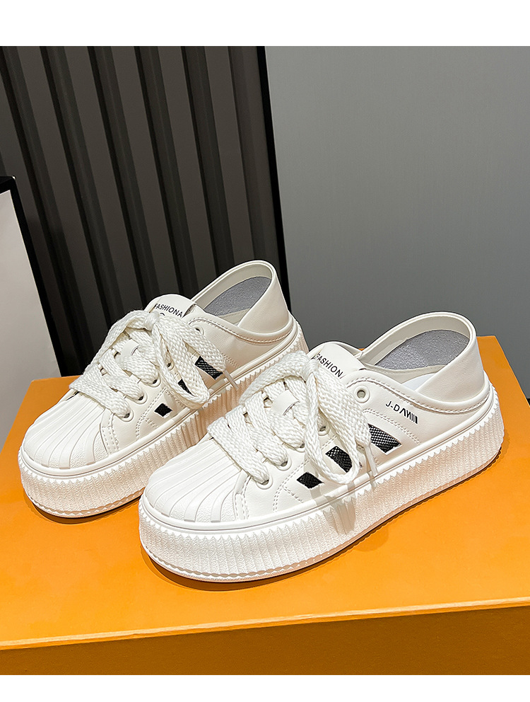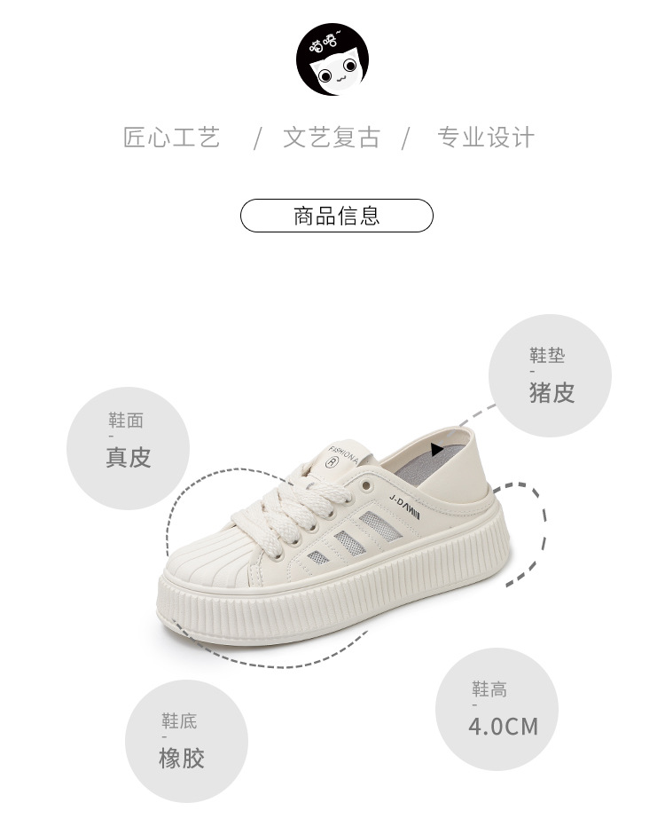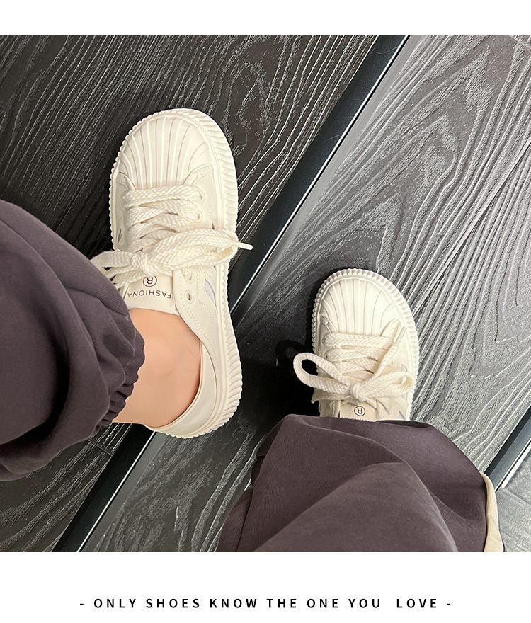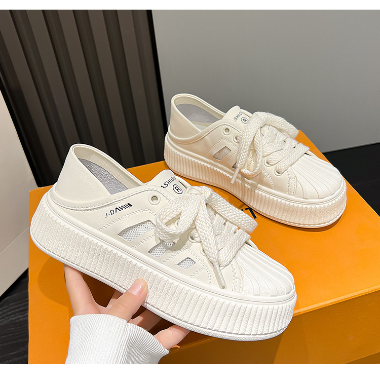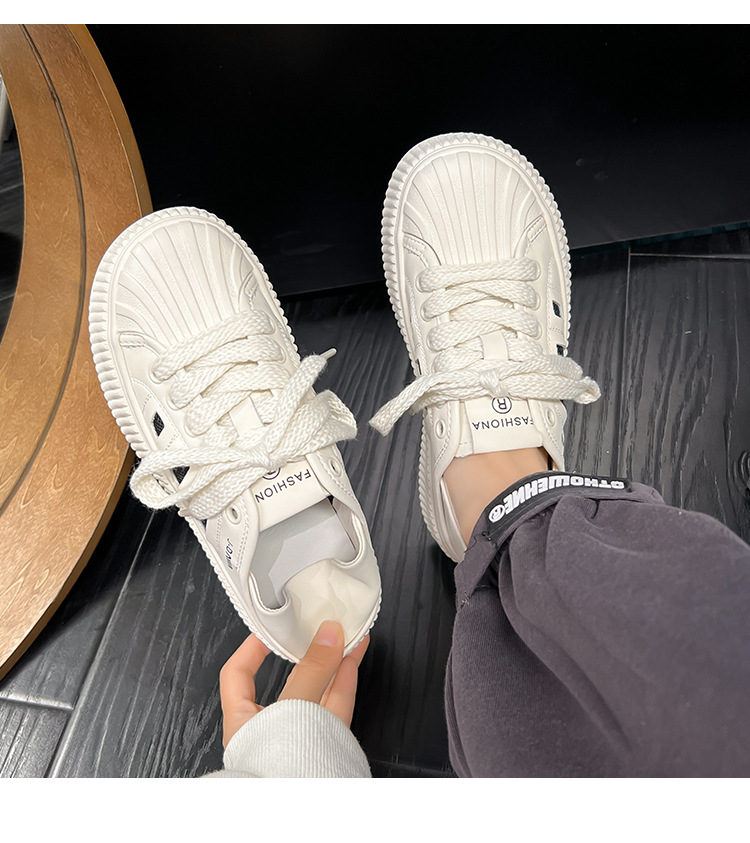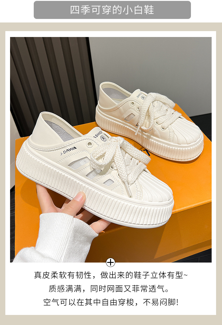Две износостойкие кожаные белые туфли на толстой подошве, Женская Осенняя Новая повседневная универсальная спортивная обувь с ракушкой в Корейском стиле, 2023 год