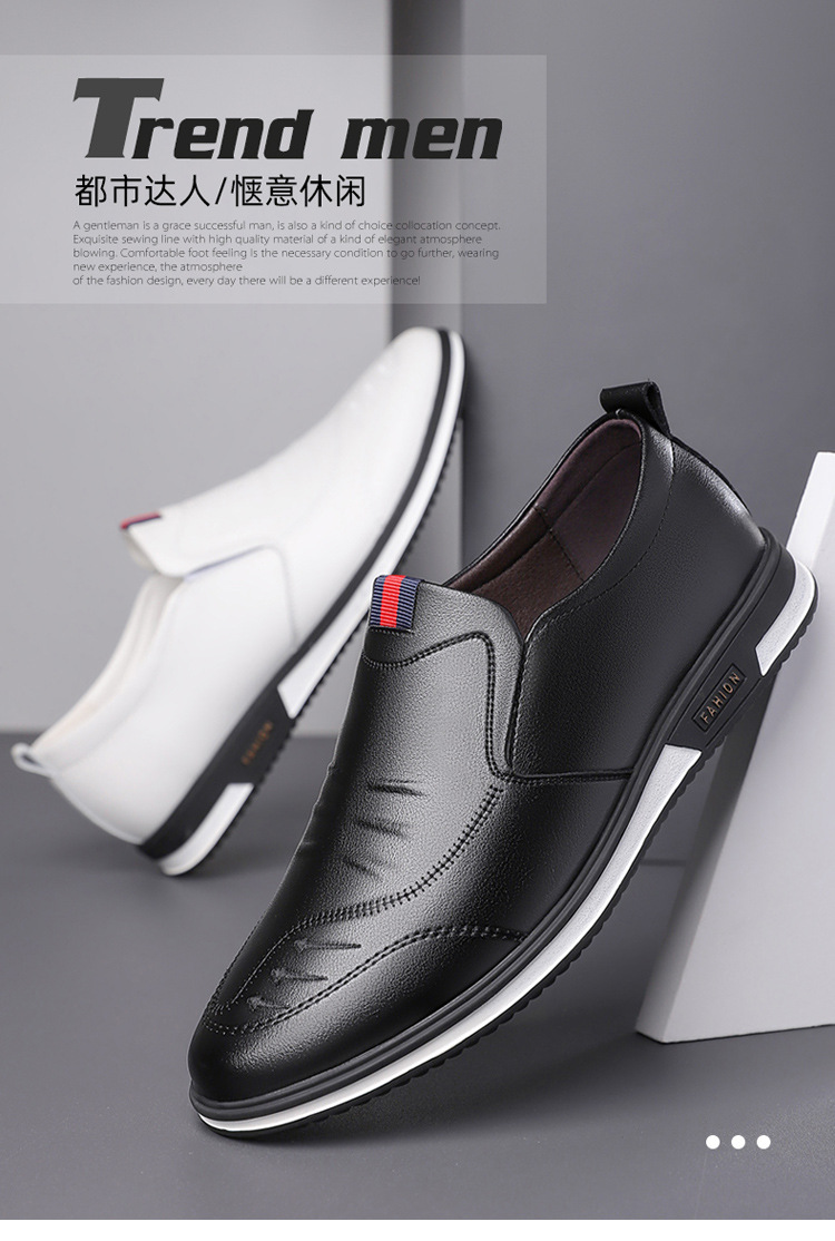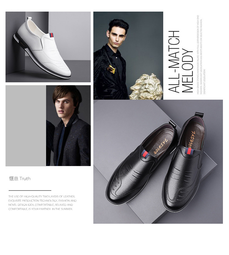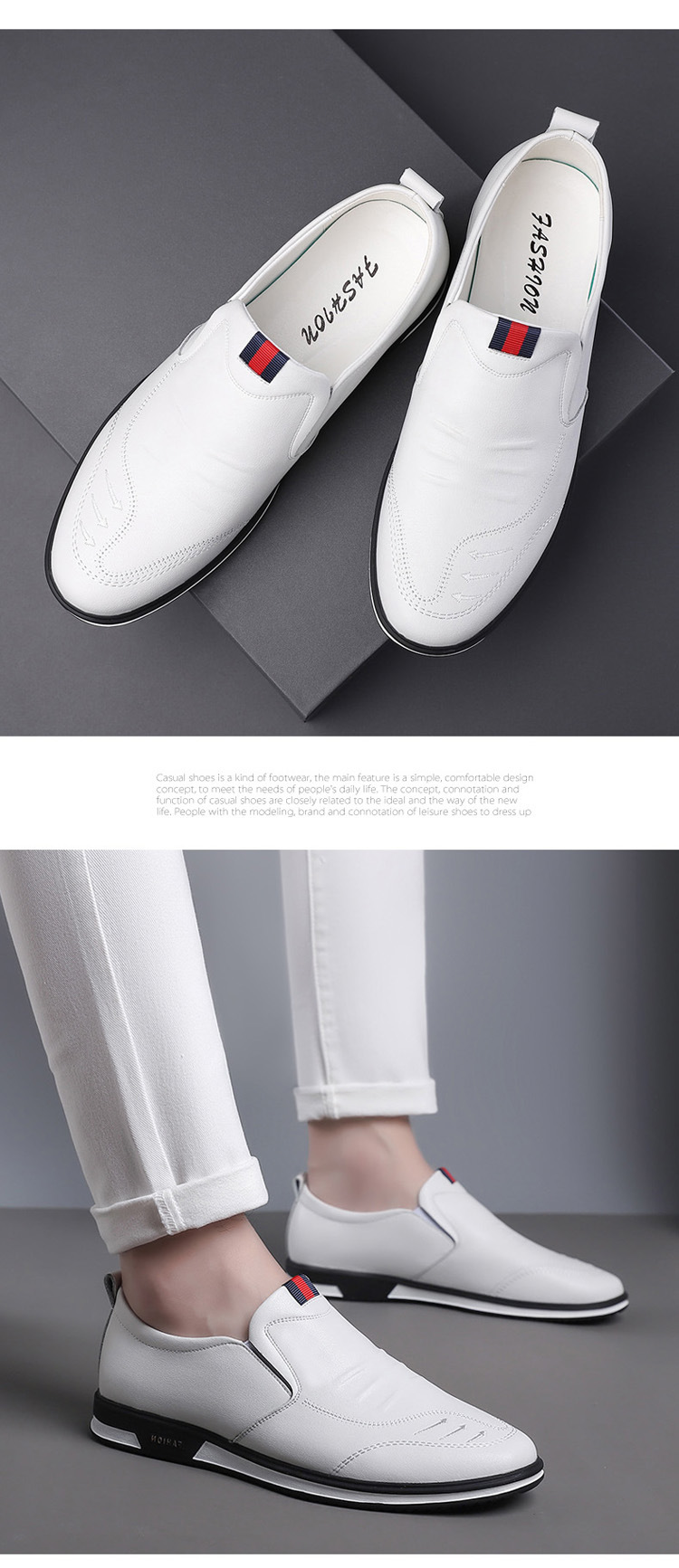 2023 летняя кожаная обувь из воловьей кожи мужская обувь на мягкой подошве мужская деловая повседневная обувь без шнуровки британские белые туфли, бобы