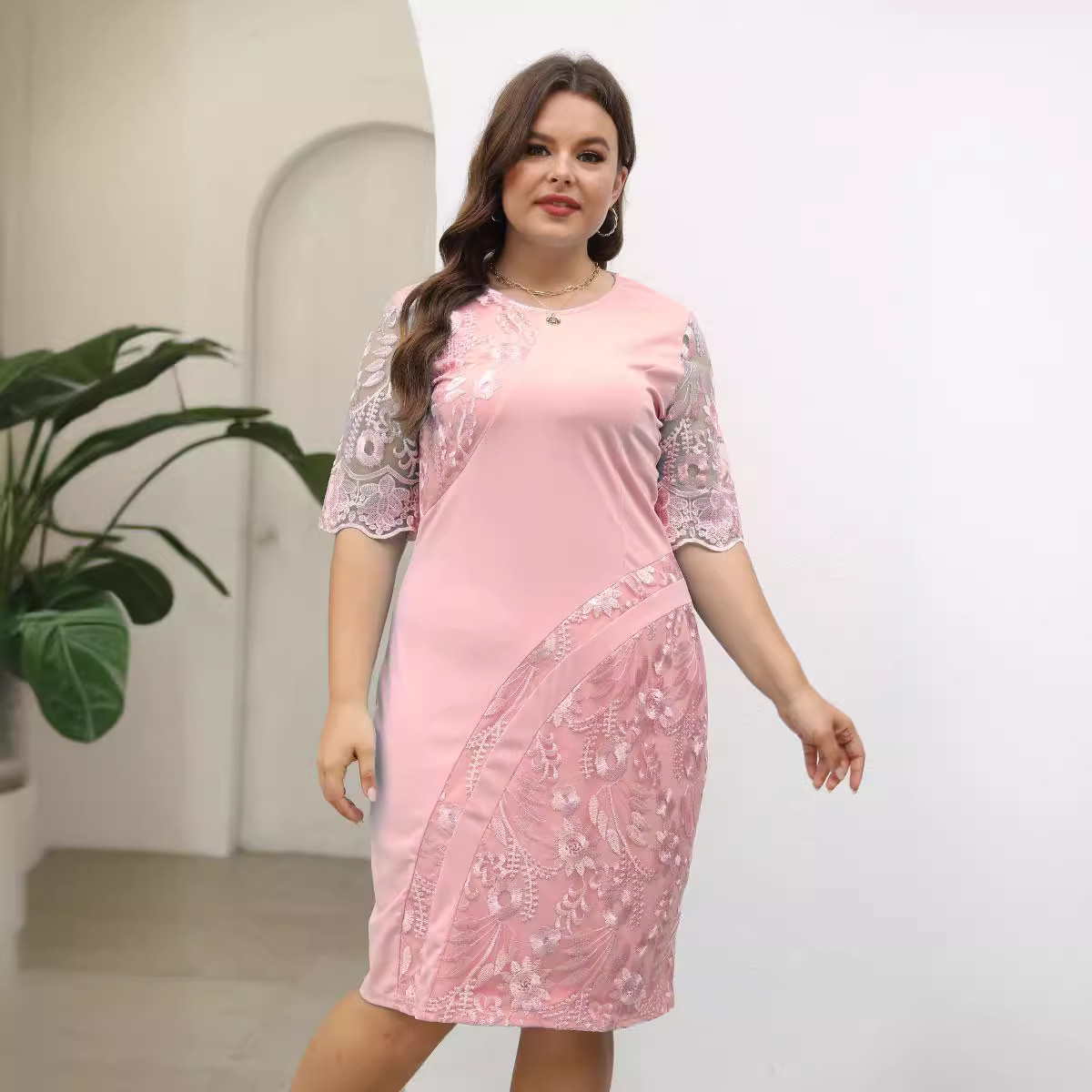 Европейская и американская трансграничная Весна и лето Новое платье для женской одежды больших размеров, шитое кружевное тонкое коктейльное платье с вышивкой