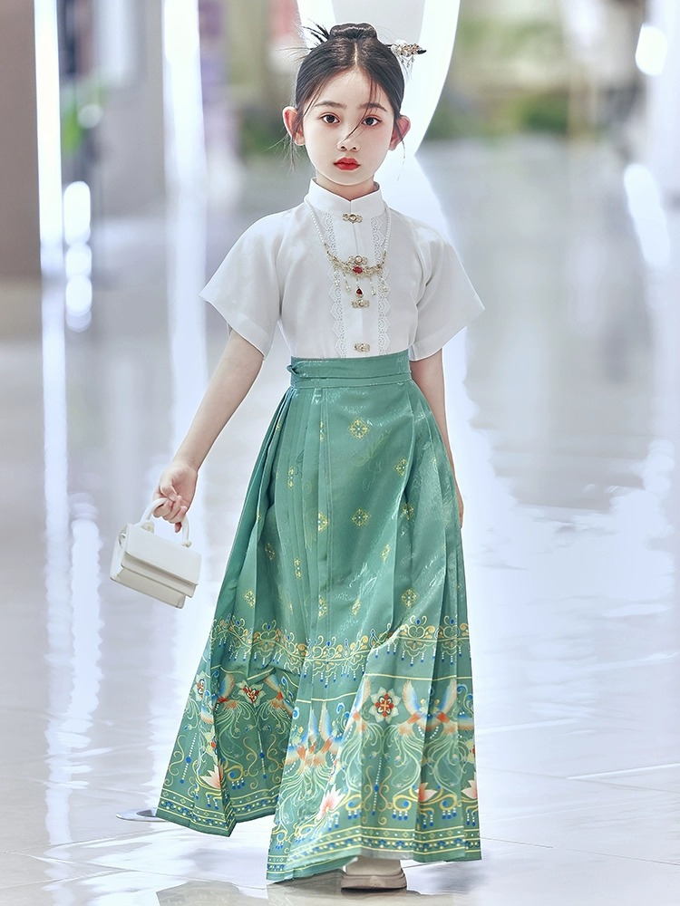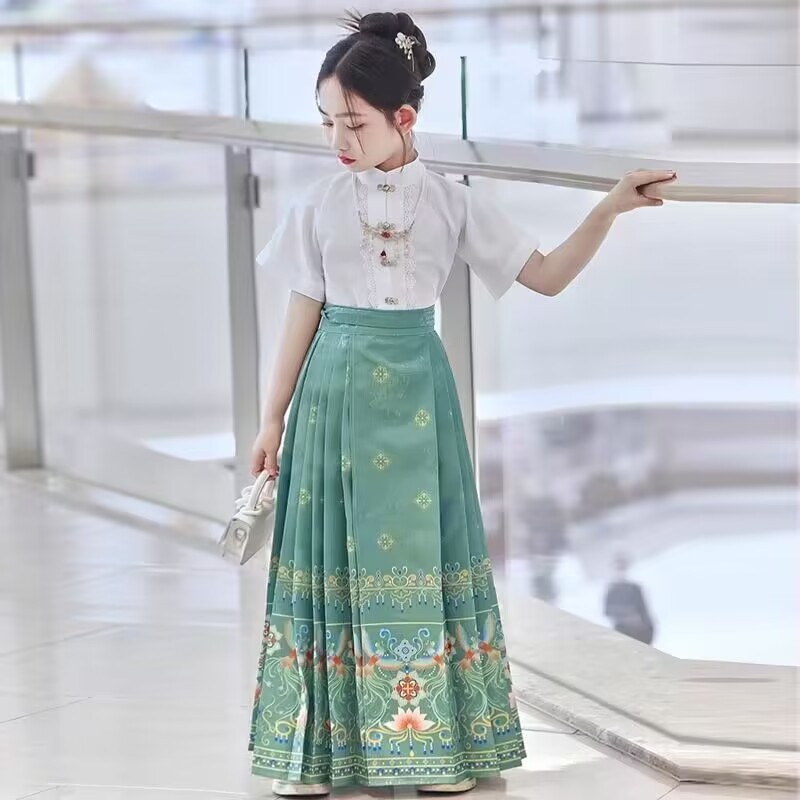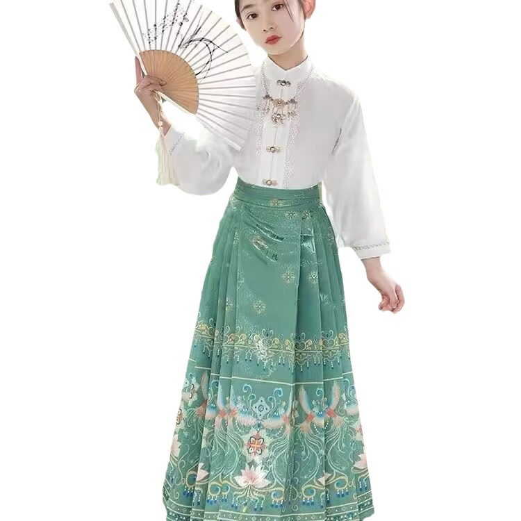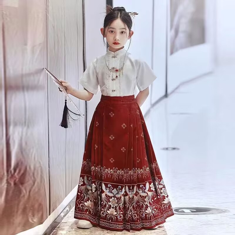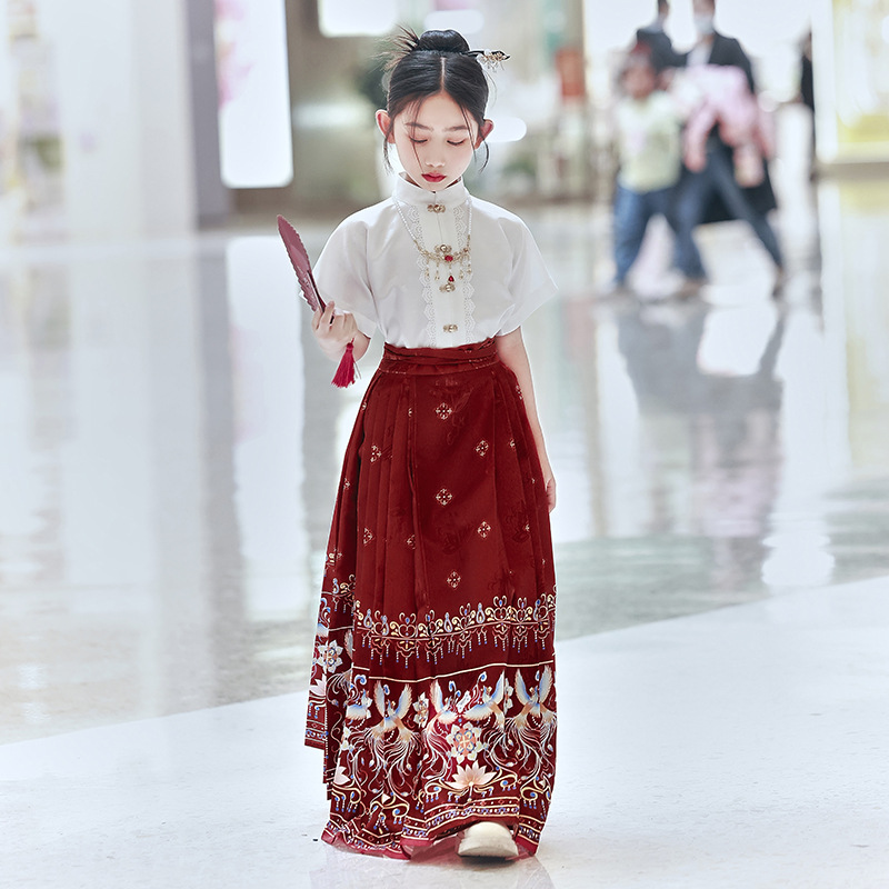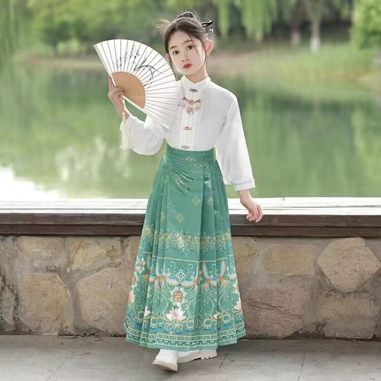 Детская юбка с конским лицом, летний костюм Тан в старинном китайском стиле Hanfu для девочек, повседневный костюм с юбкой для маленьких девочек