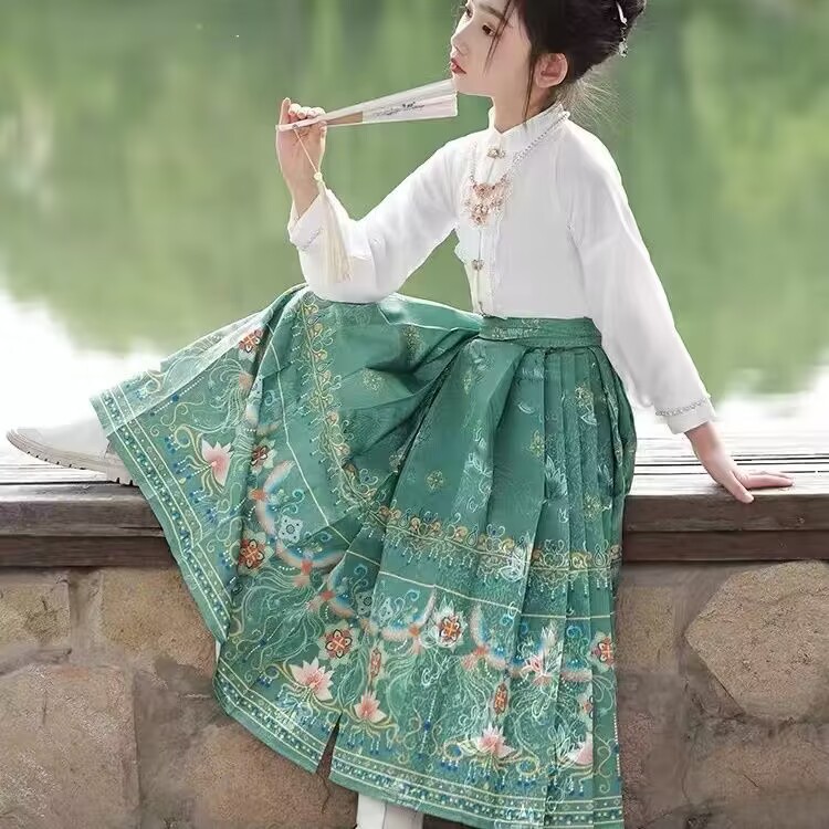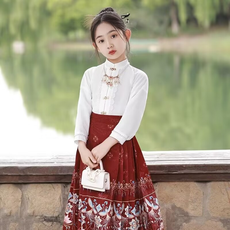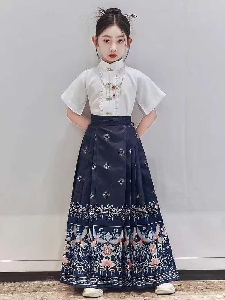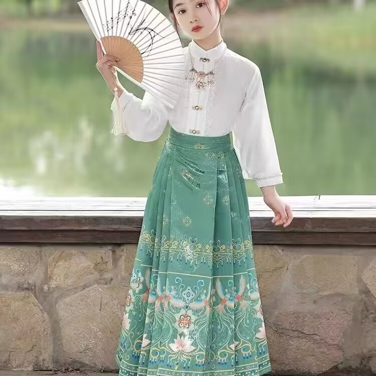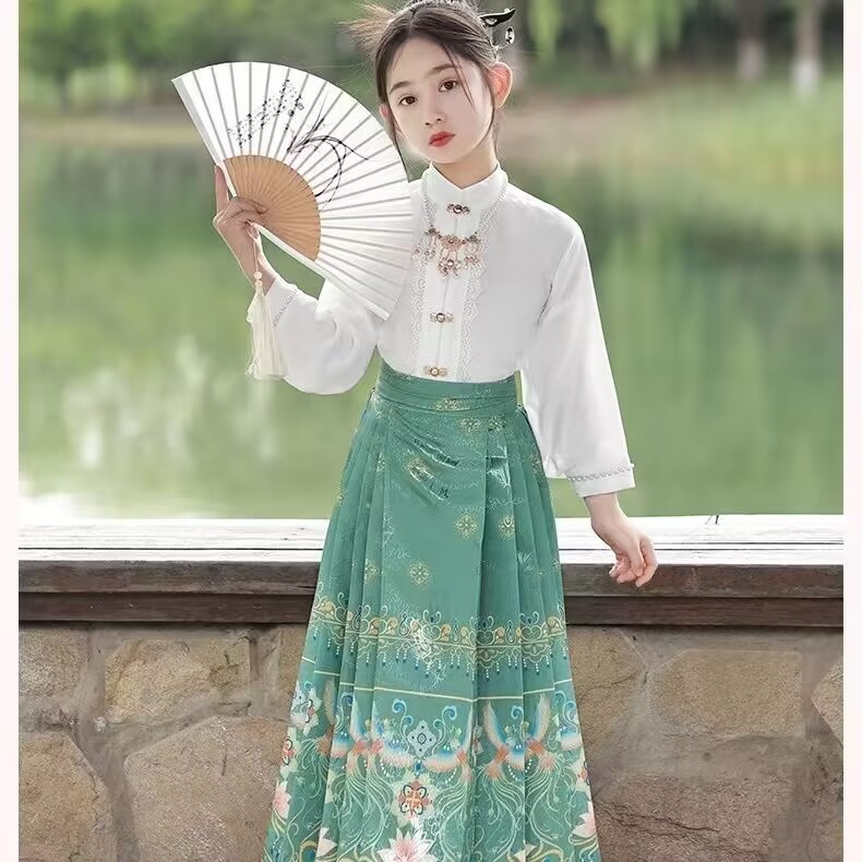 Детская юбка с конским лицом, летний костюм Тан в старинном китайском стиле Hanfu для девочек, повседневный костюм с юбкой для маленьких девочек