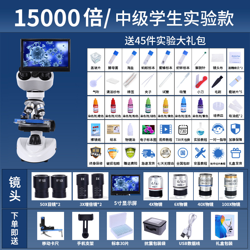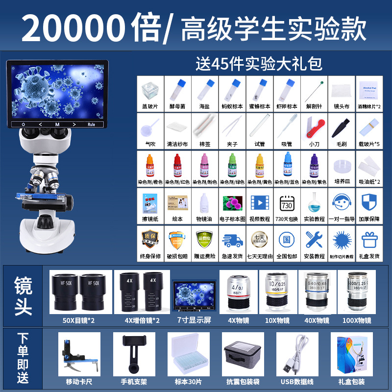 Маленький бинокль - [12000 увеличений] + 30 образцов; Маленький бинокль-[12000 раз]+30 образцов+мобильный штангенциркуль+электронный окуляр; Маленький бинокль - [15000 увеличений] + 30 образцов; Маленький бинокль-[15000 раз]+30 образцов+мобильный штангенциркуль+5inch дисплея; Маленький бинокль - [увеличение 20000x] + 30 готовых слайдов + мобильный штангенциркуль; Маленький бинокль - [20000 увеличений] + 30 образцов + мобильный штангенциркуль + 7inch дисплей